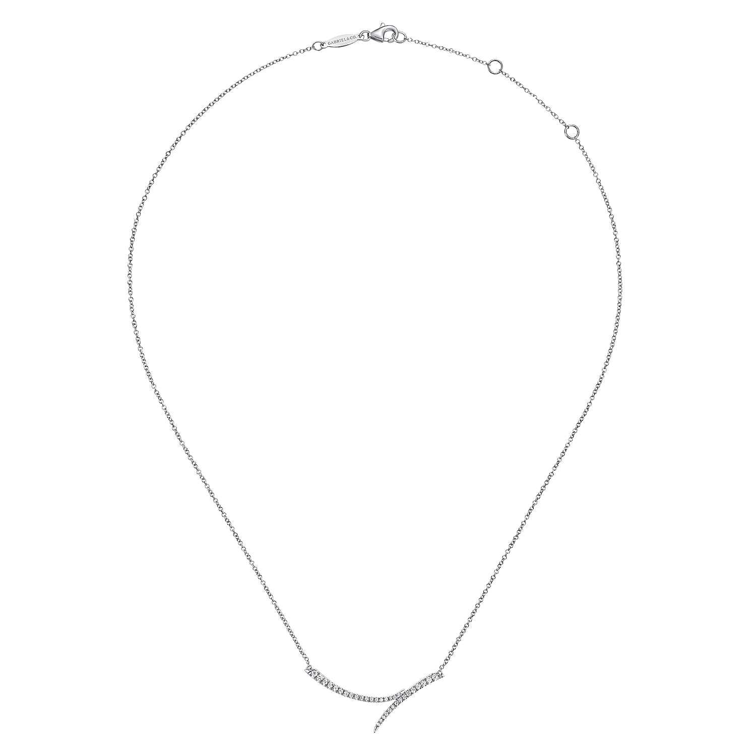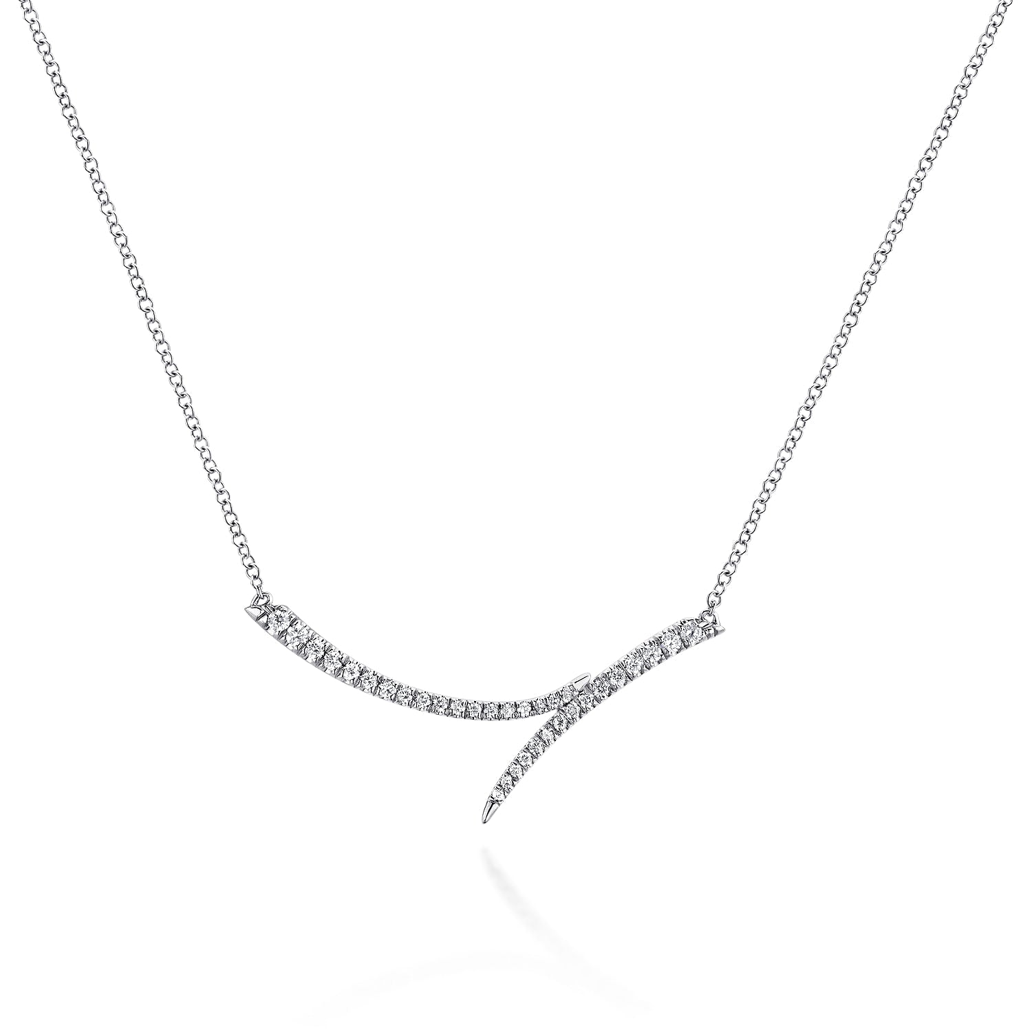 14K White Gold Curved Bypass Bar Necklace with Diamonds