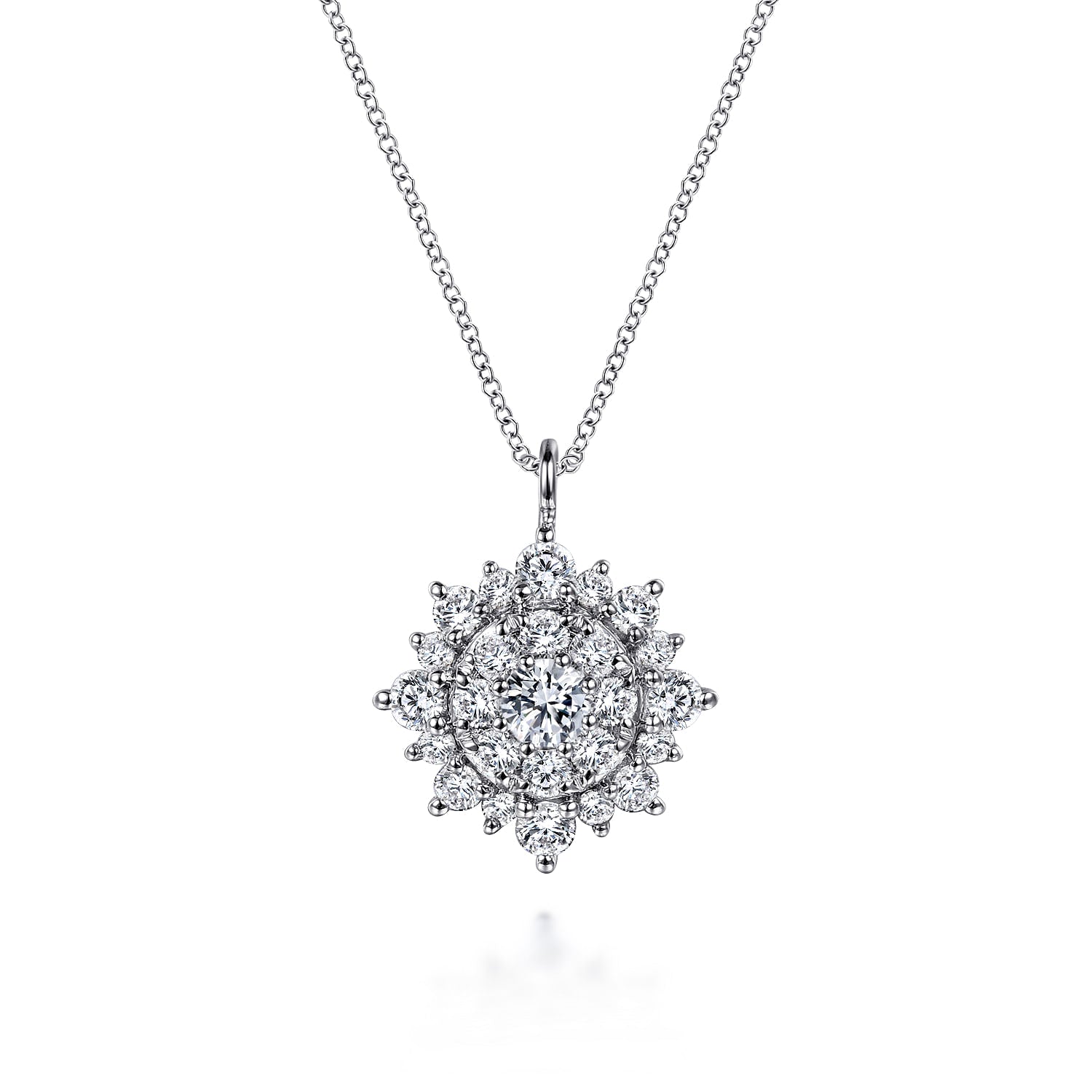 14K White Gold Diamond Cluster Pendant Necklace