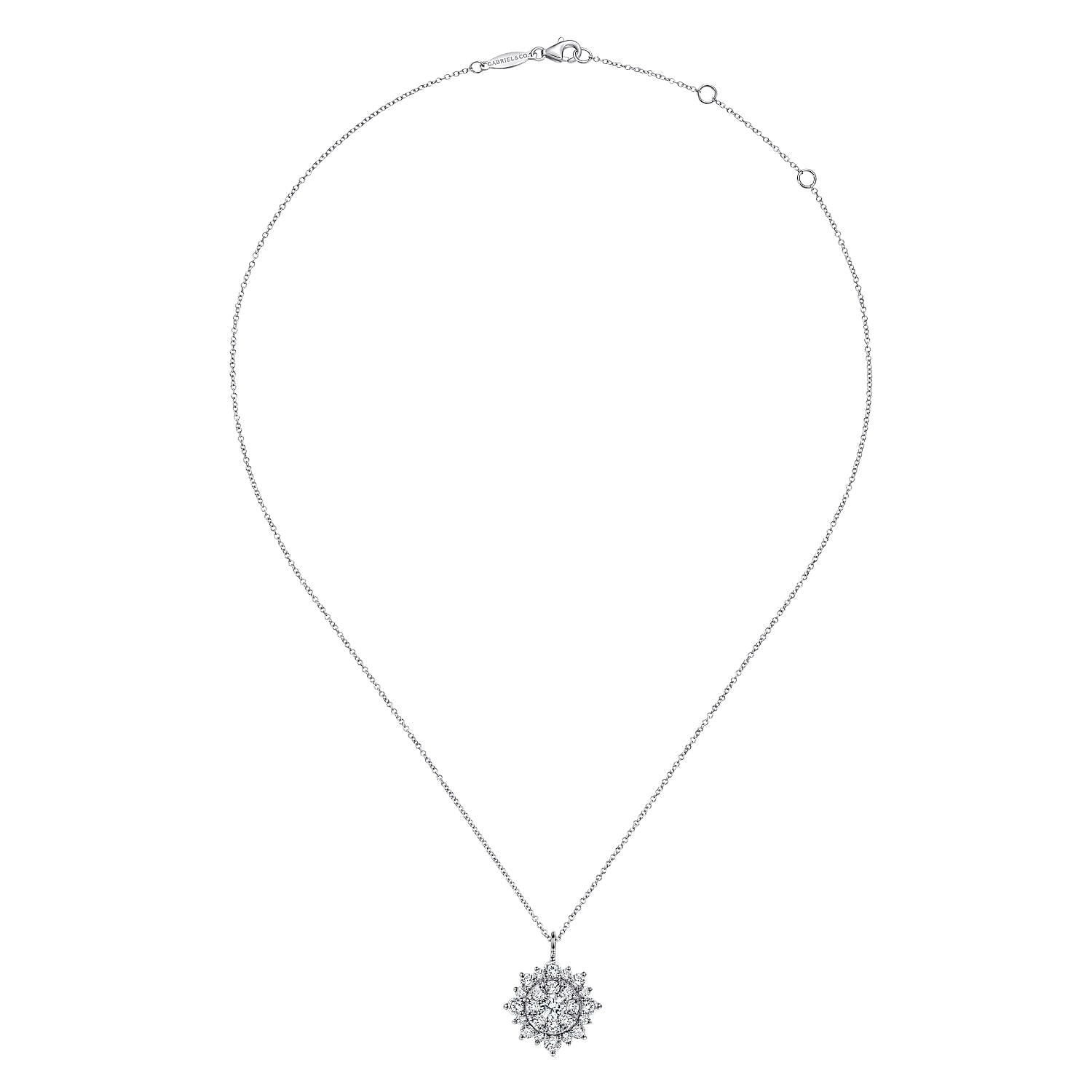 You're reviewing: 14K White Gold Diamond Cluster Pendant Necklace