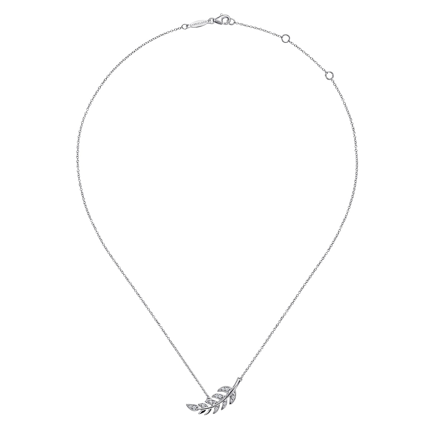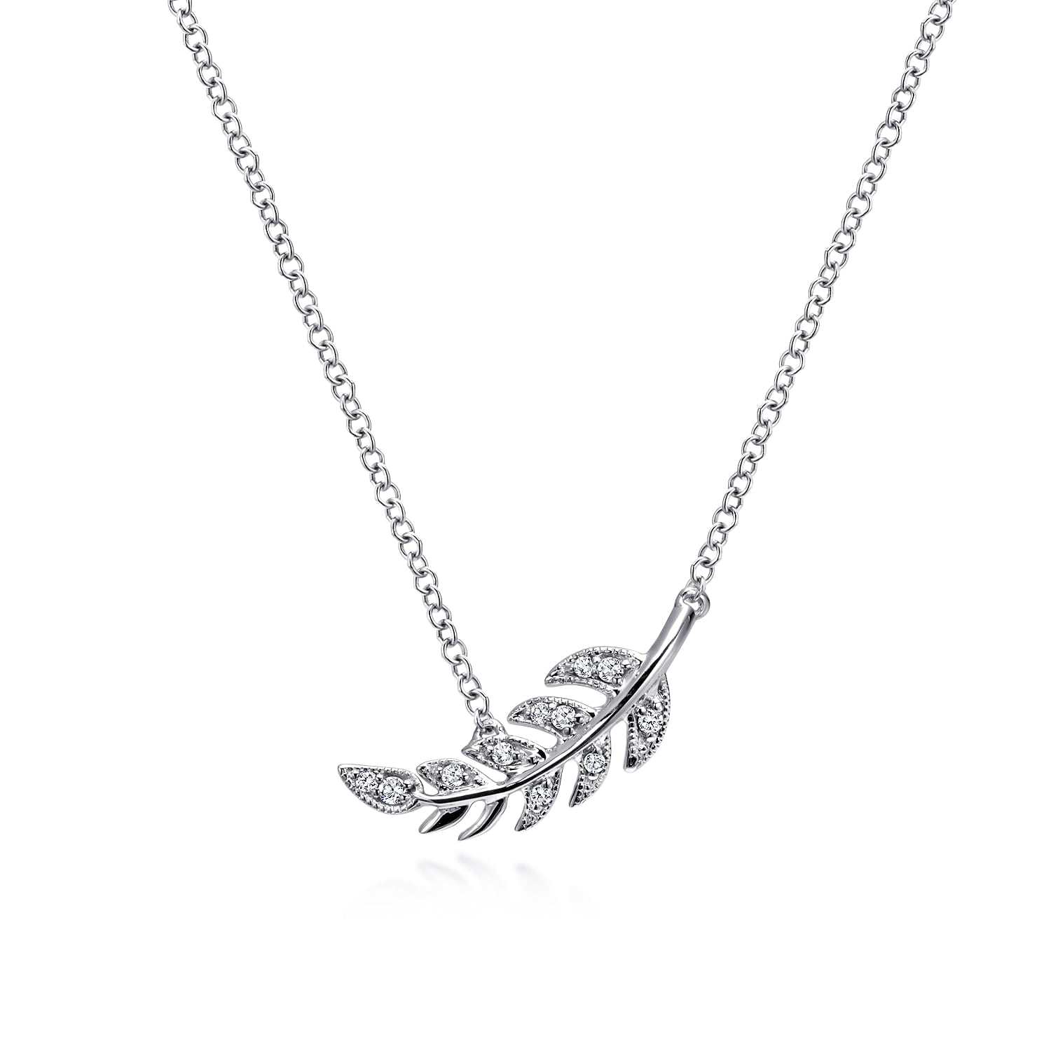 You're reviewing: 14K White Gold Diamond Leaf Pendant Necklace