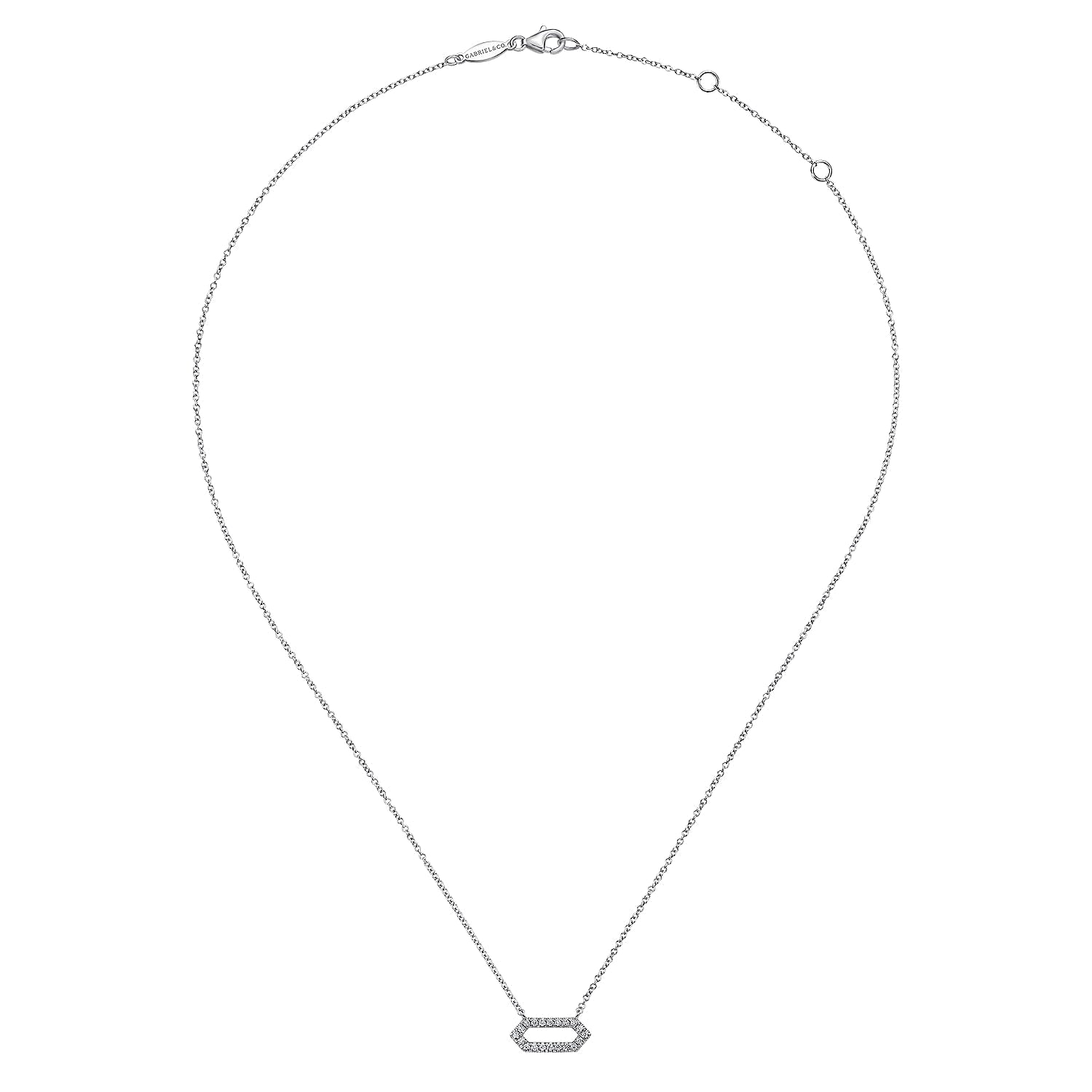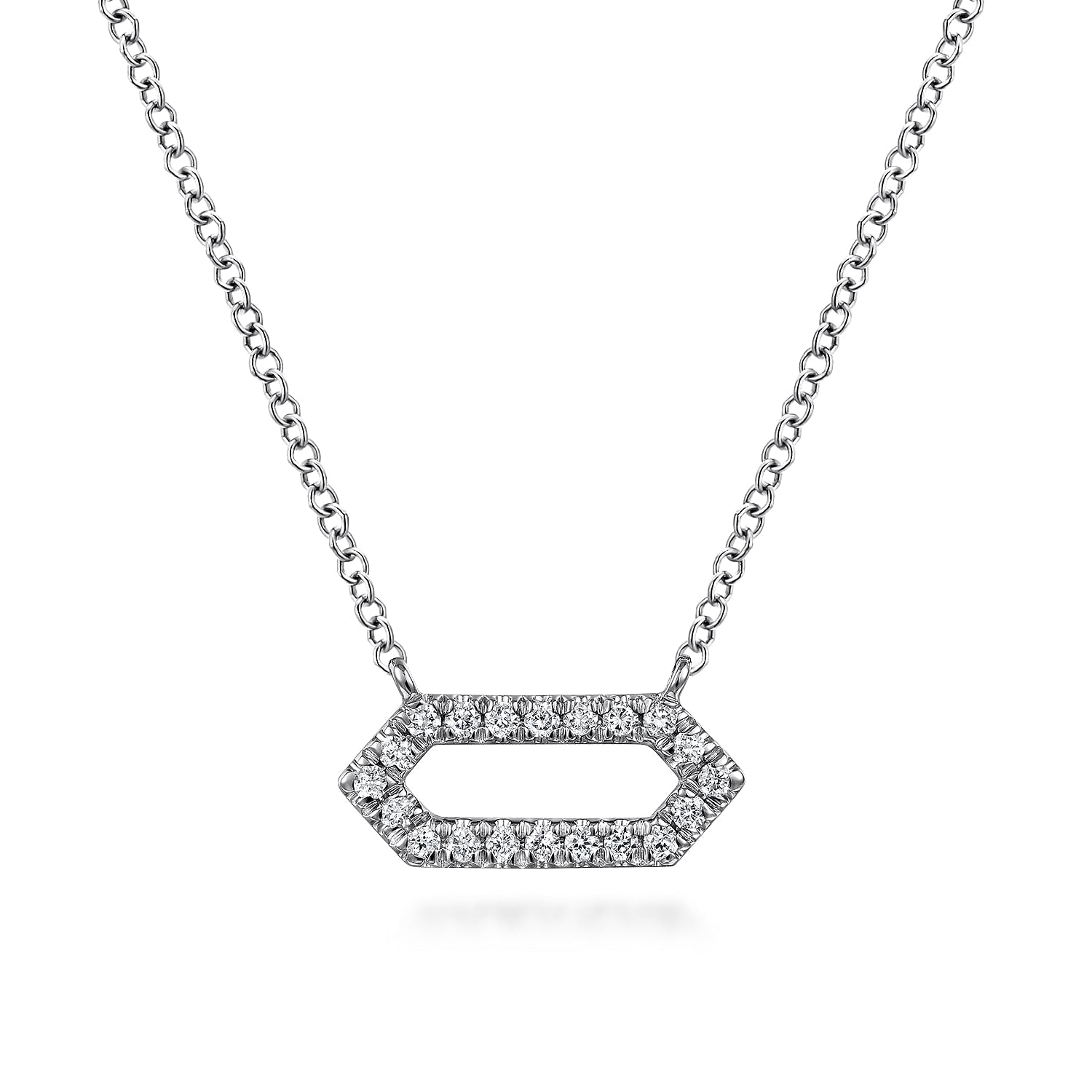 You're reviewing: 14K White Gold Elongated Hexagonal Diamond Pendant Necklace