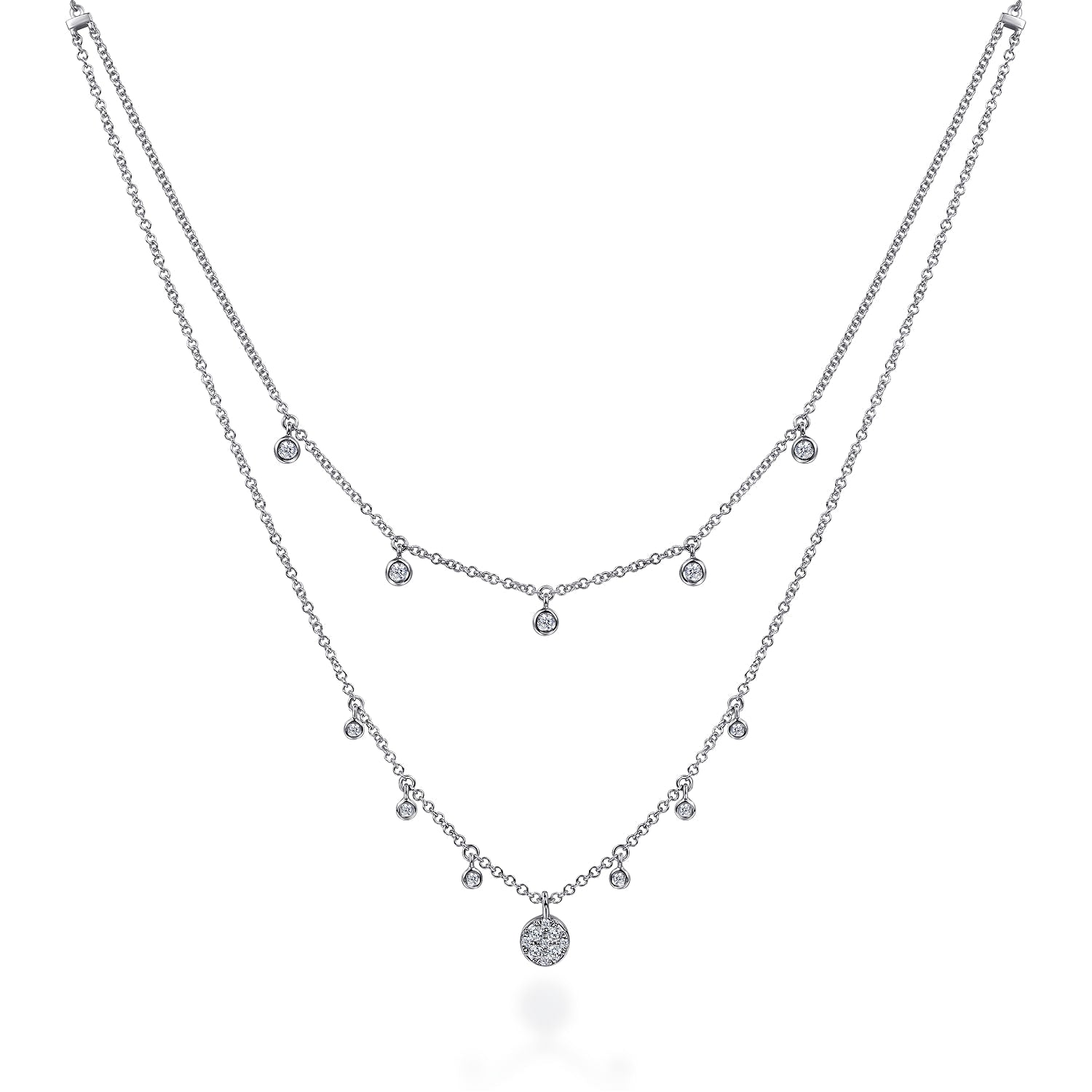 You're reviewing: 14k White Gold Layered Diamond Charm Drop Necklace