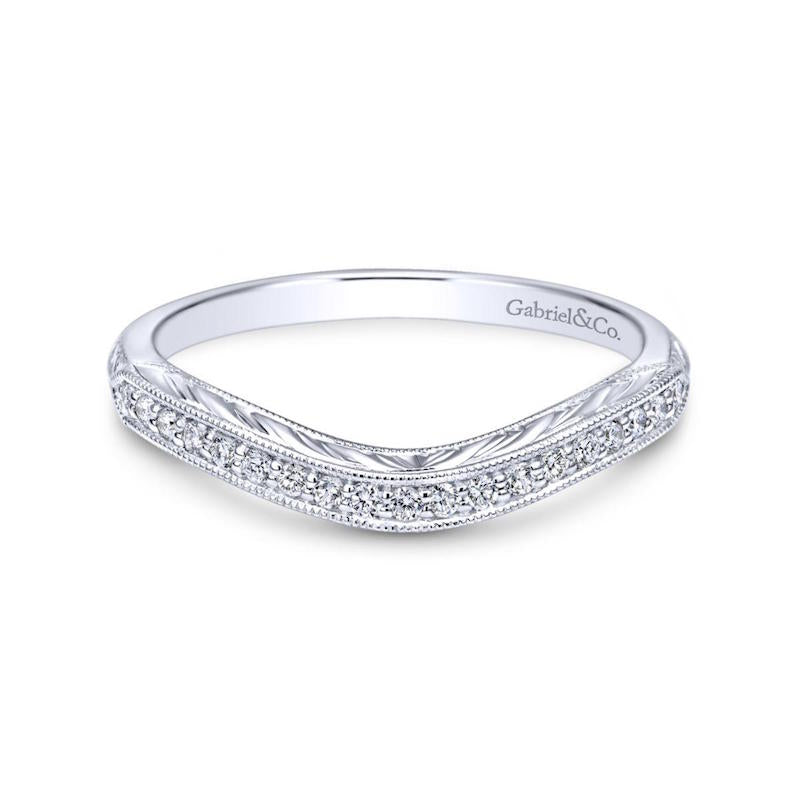 Gabriel & Co. 14k White Gold Victorian Curved Wedding Band