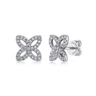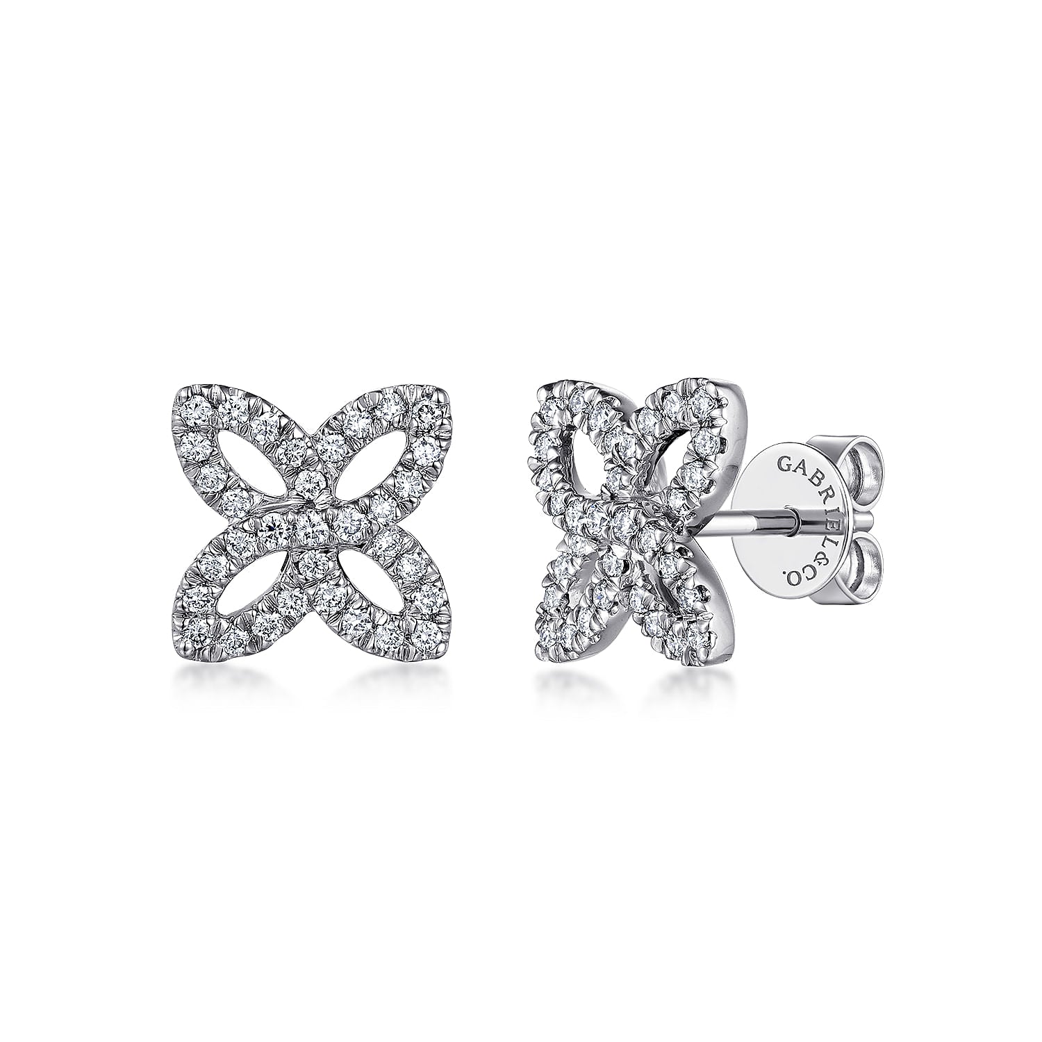 14K White Gold Open Floral Pavé Diamond Stud Earrings