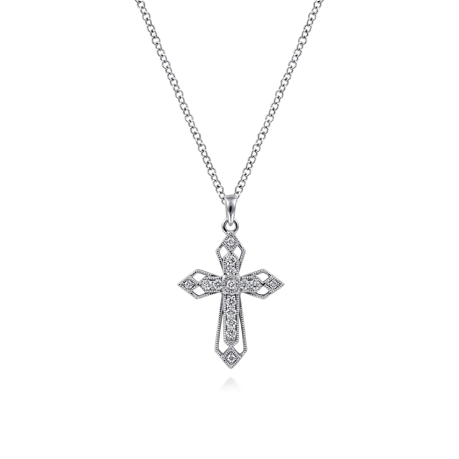 You're reviewing: 14K White Gold Openwork Diamond Cross Necklace