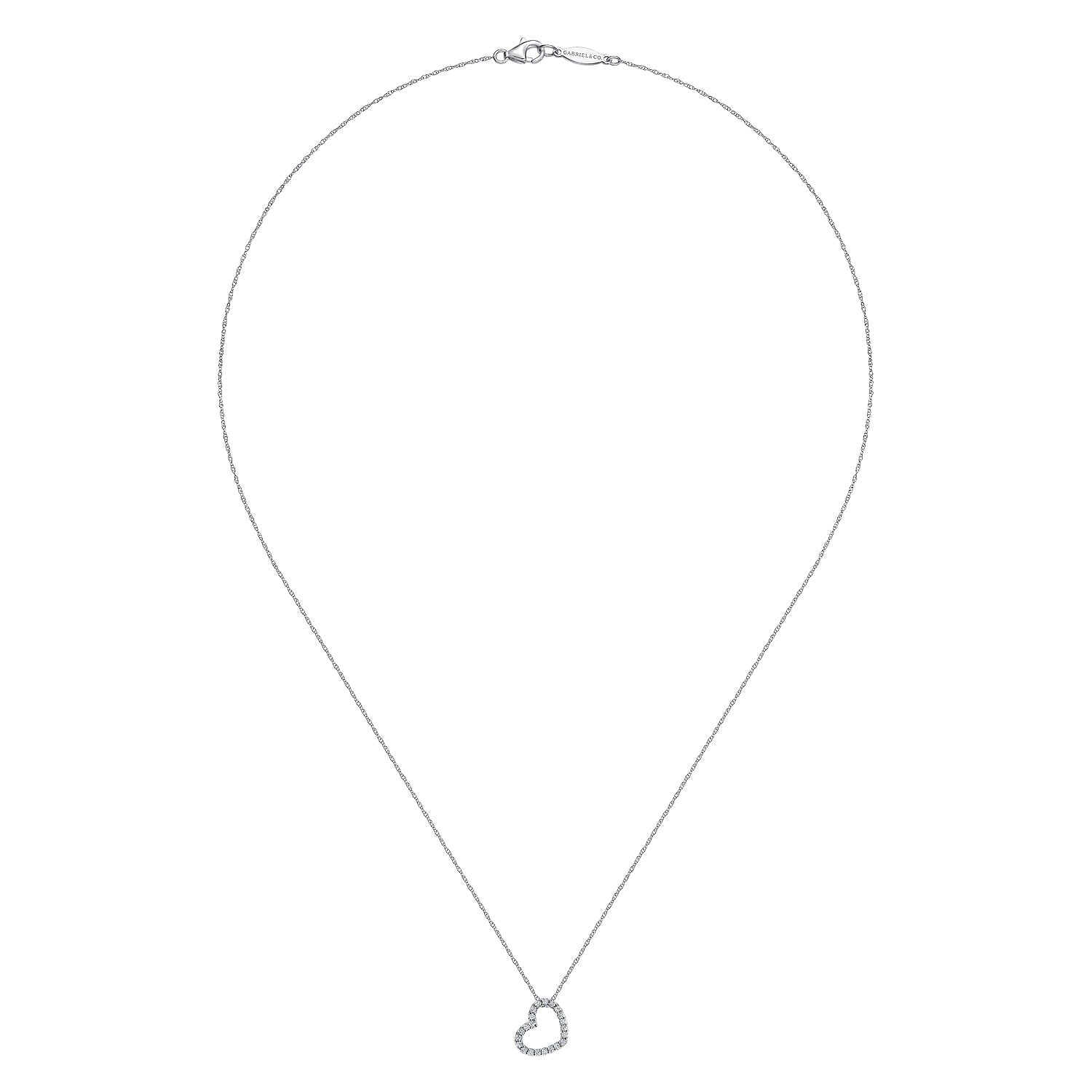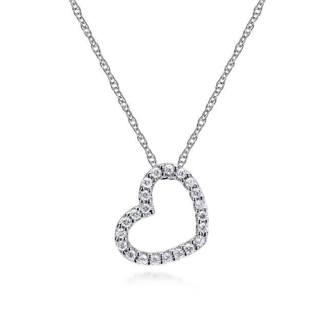 14K White Gold Pavé Diamond Sidways Open Heart Pendant Necklace