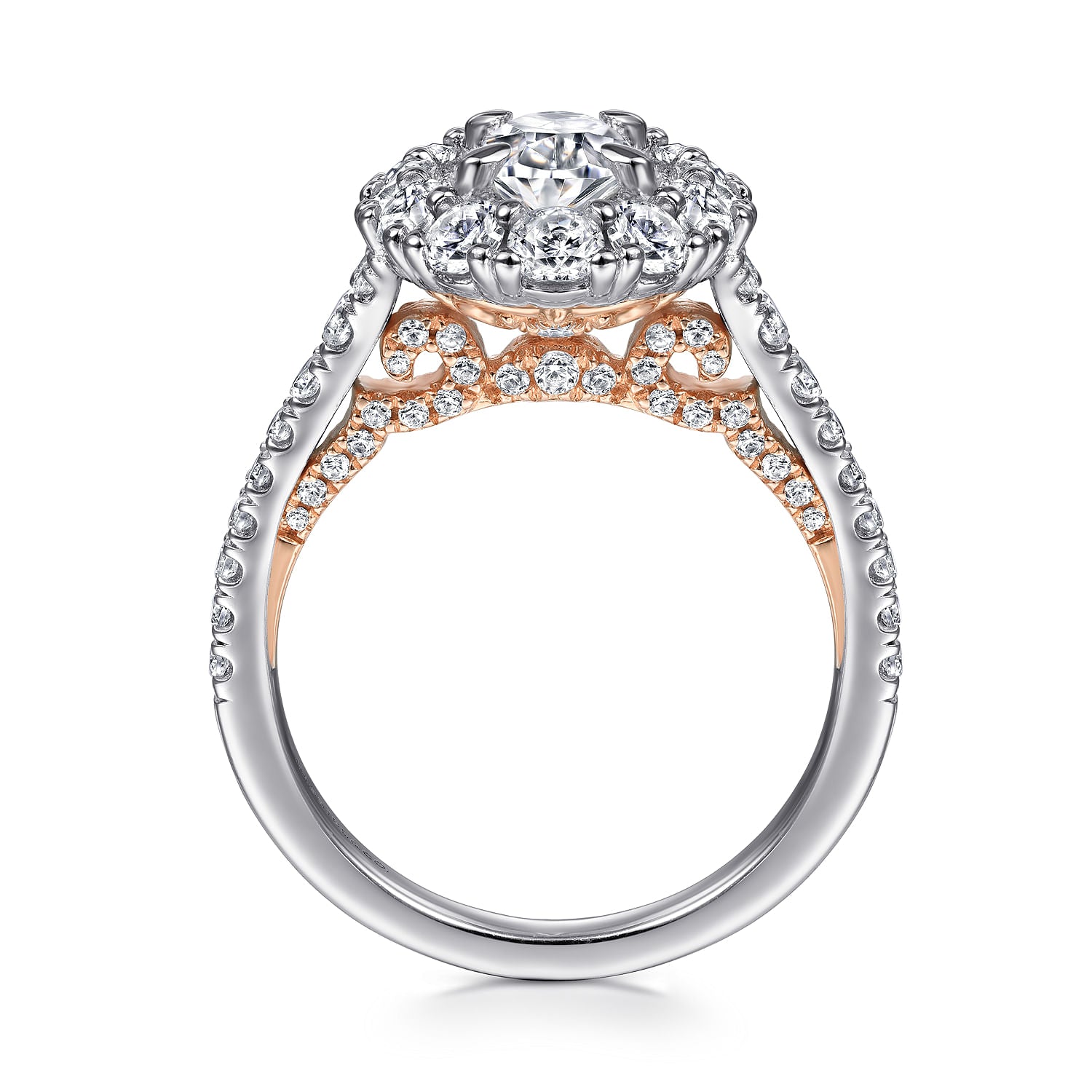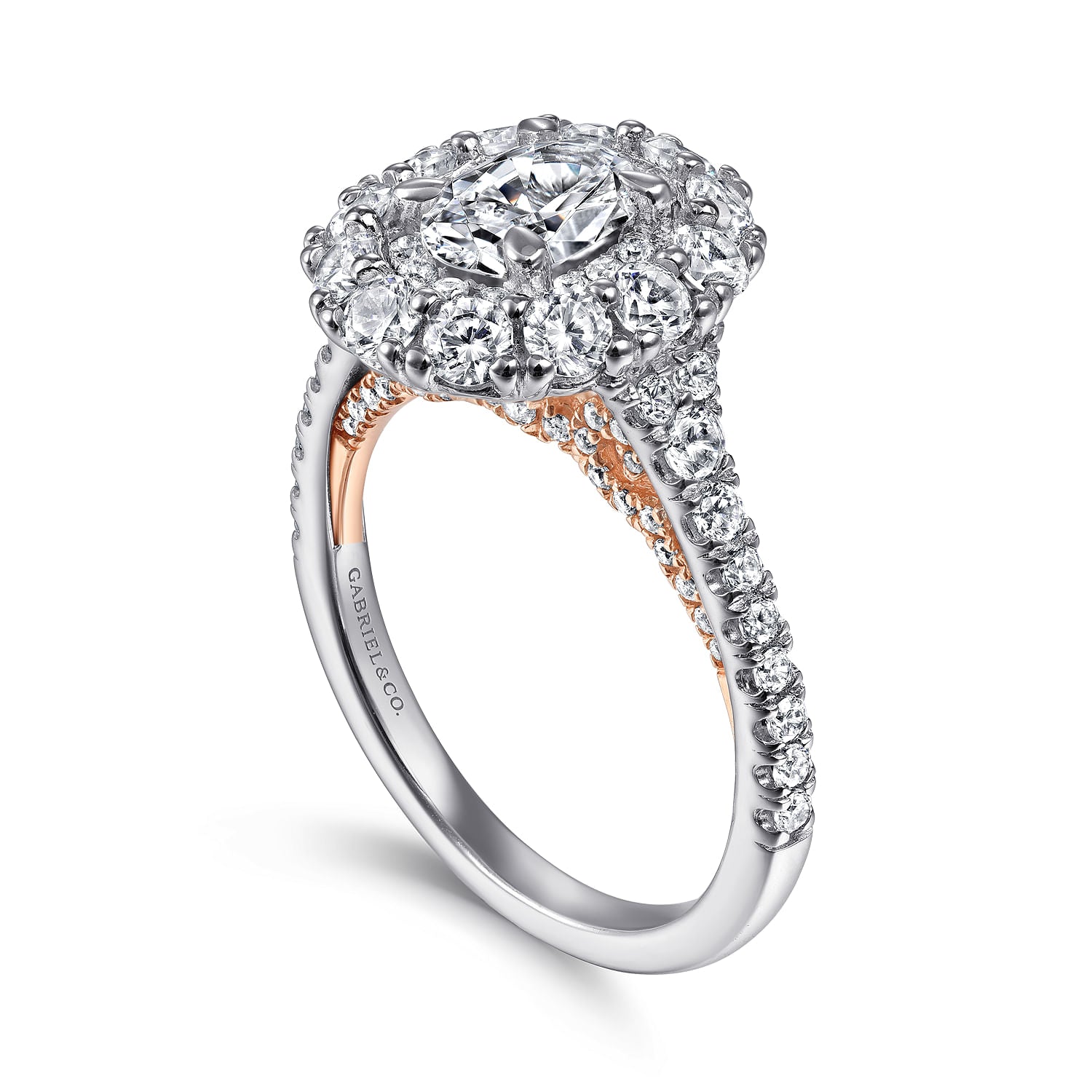 14K White-Rose Gold Oval Double Halo Diamond Engagement Ring