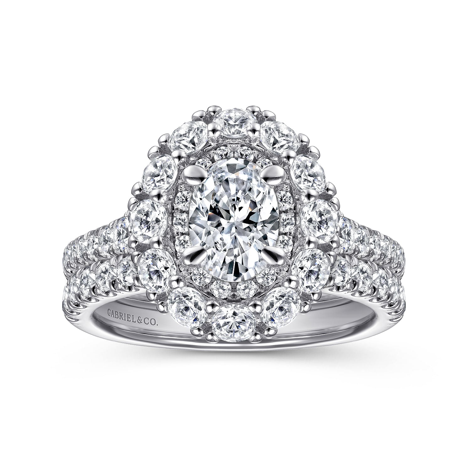 You're reviewing: 14K White-Rose Gold Oval Double Halo Diamond Engagement Ring