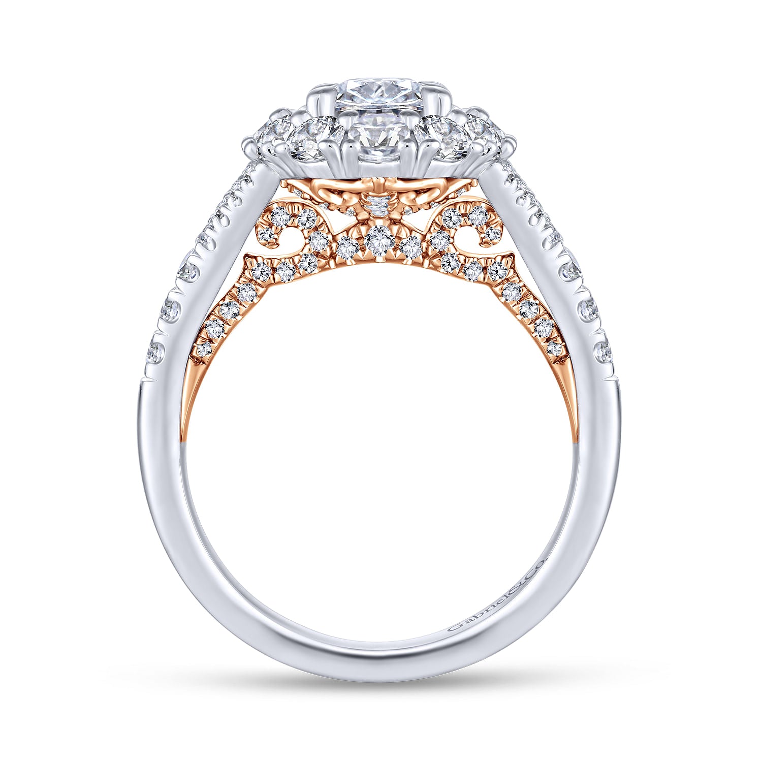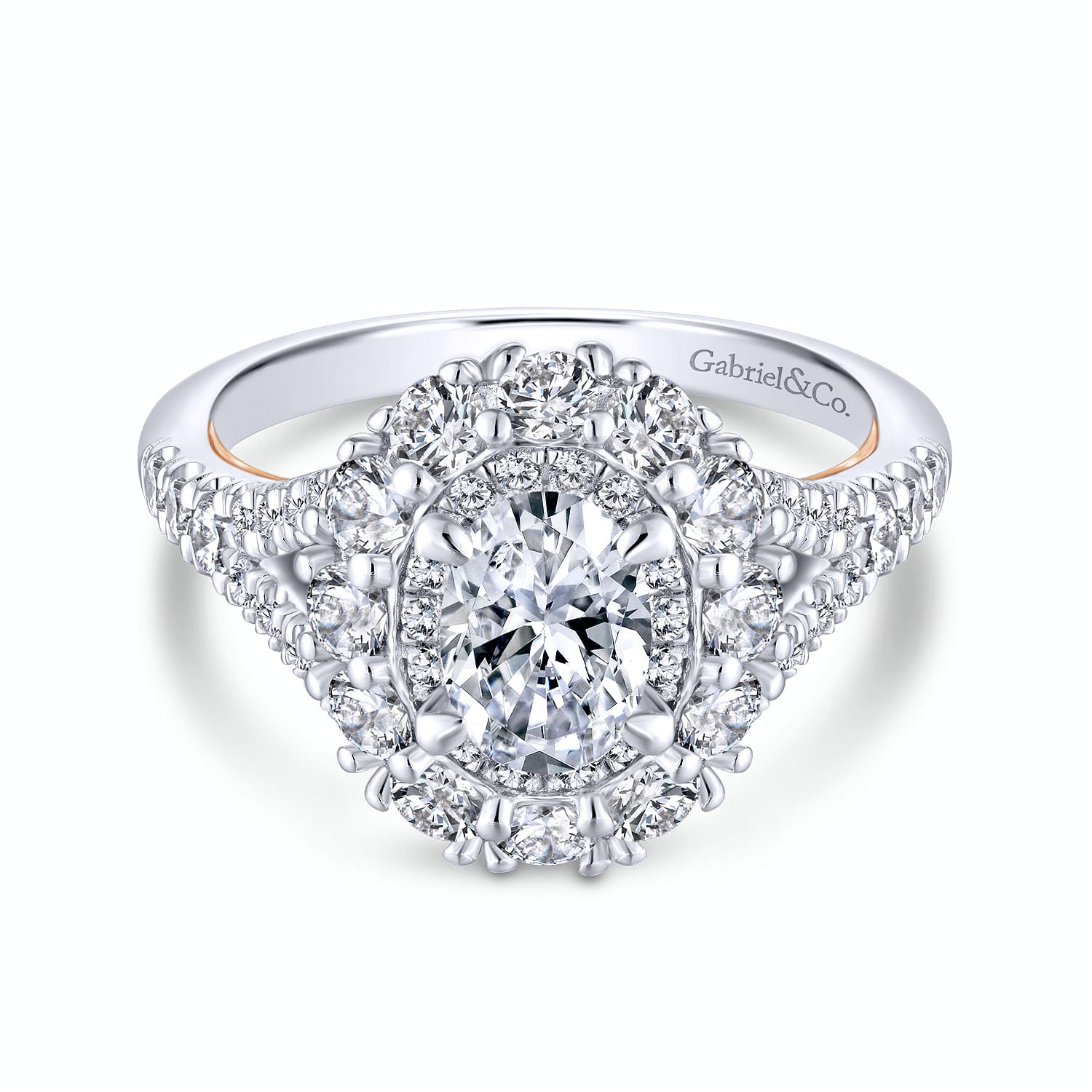 14K White-Rose Gold Oval Double Halo Diamond Engagement Ring