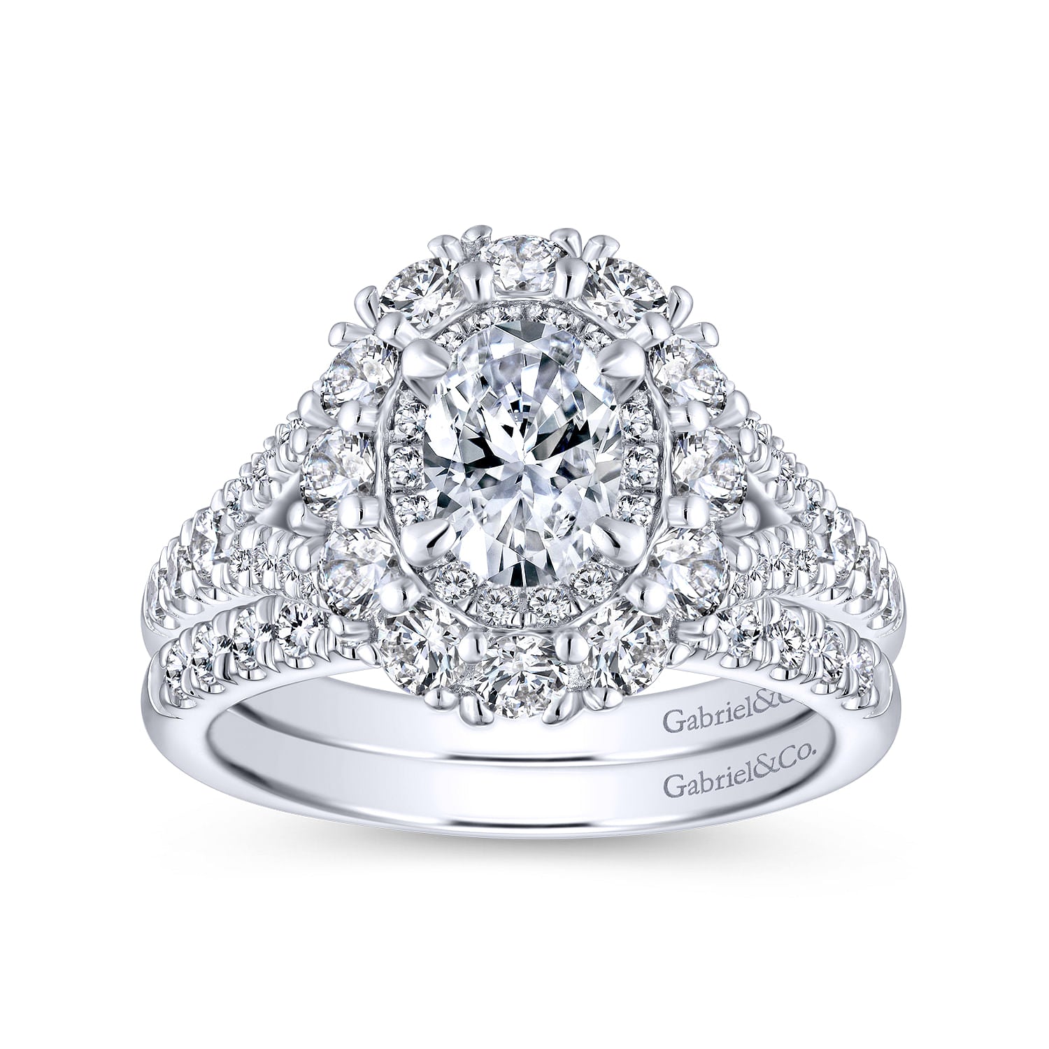 You're reviewing: 14K White-Rose Gold Oval Double Halo Diamond Engagement Ring