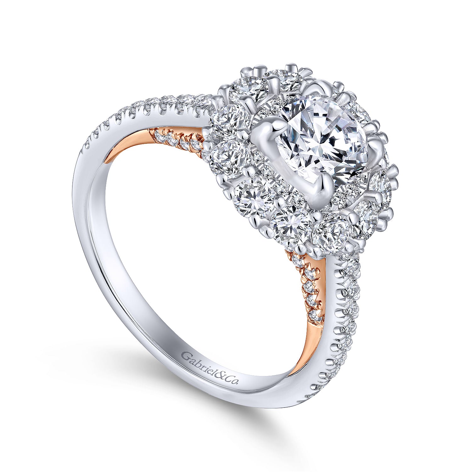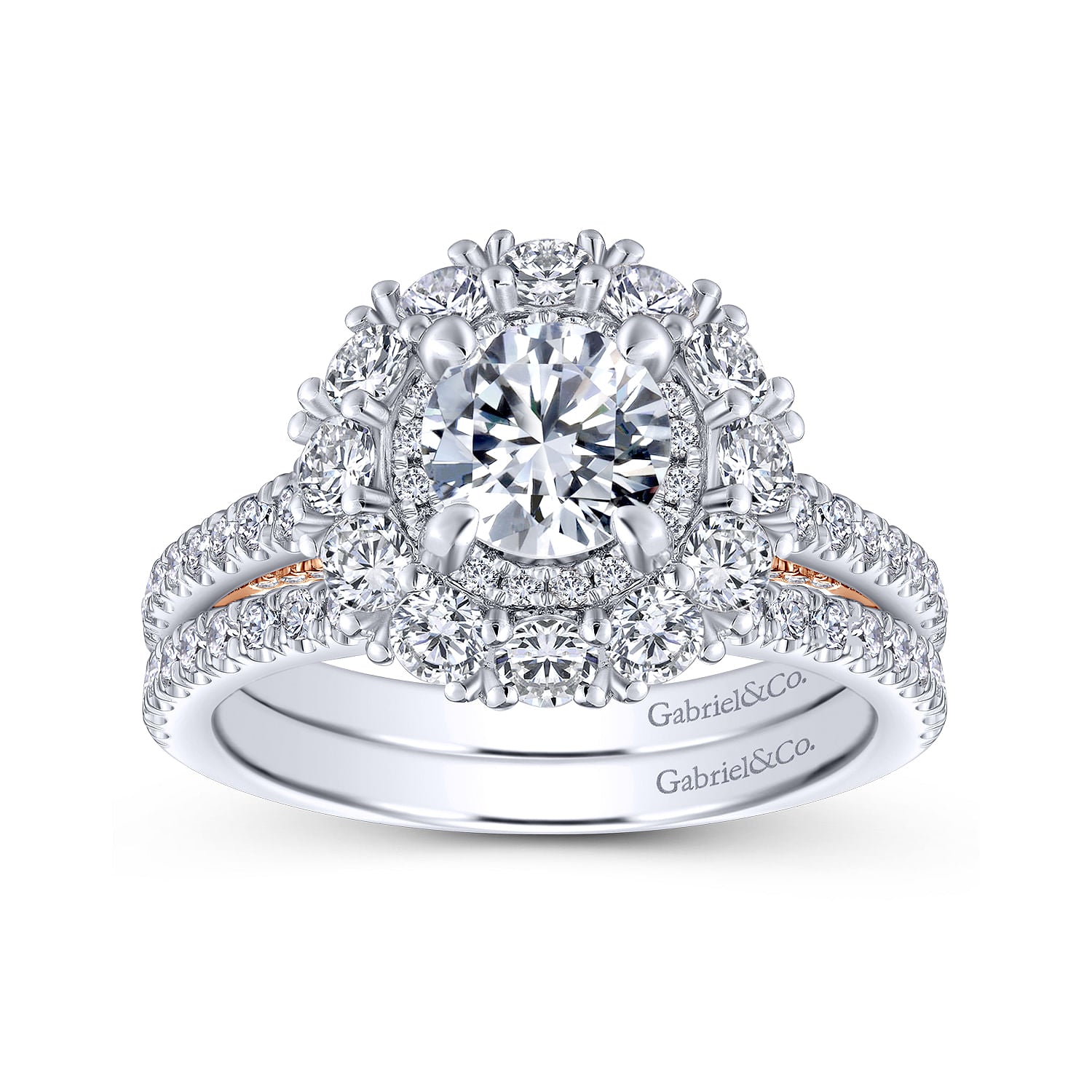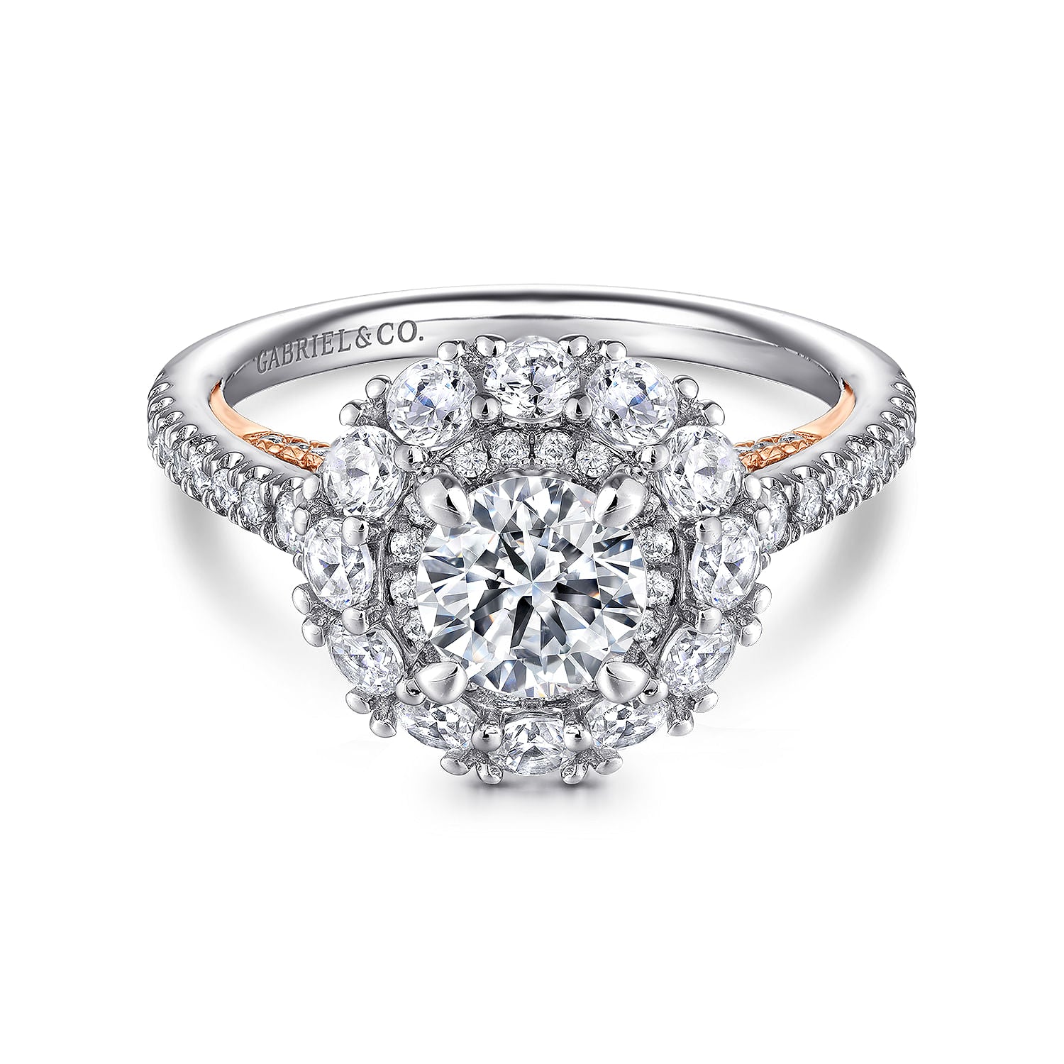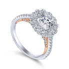 14K White-Rose Gold Round Double Halo Diamond Engagement Ring