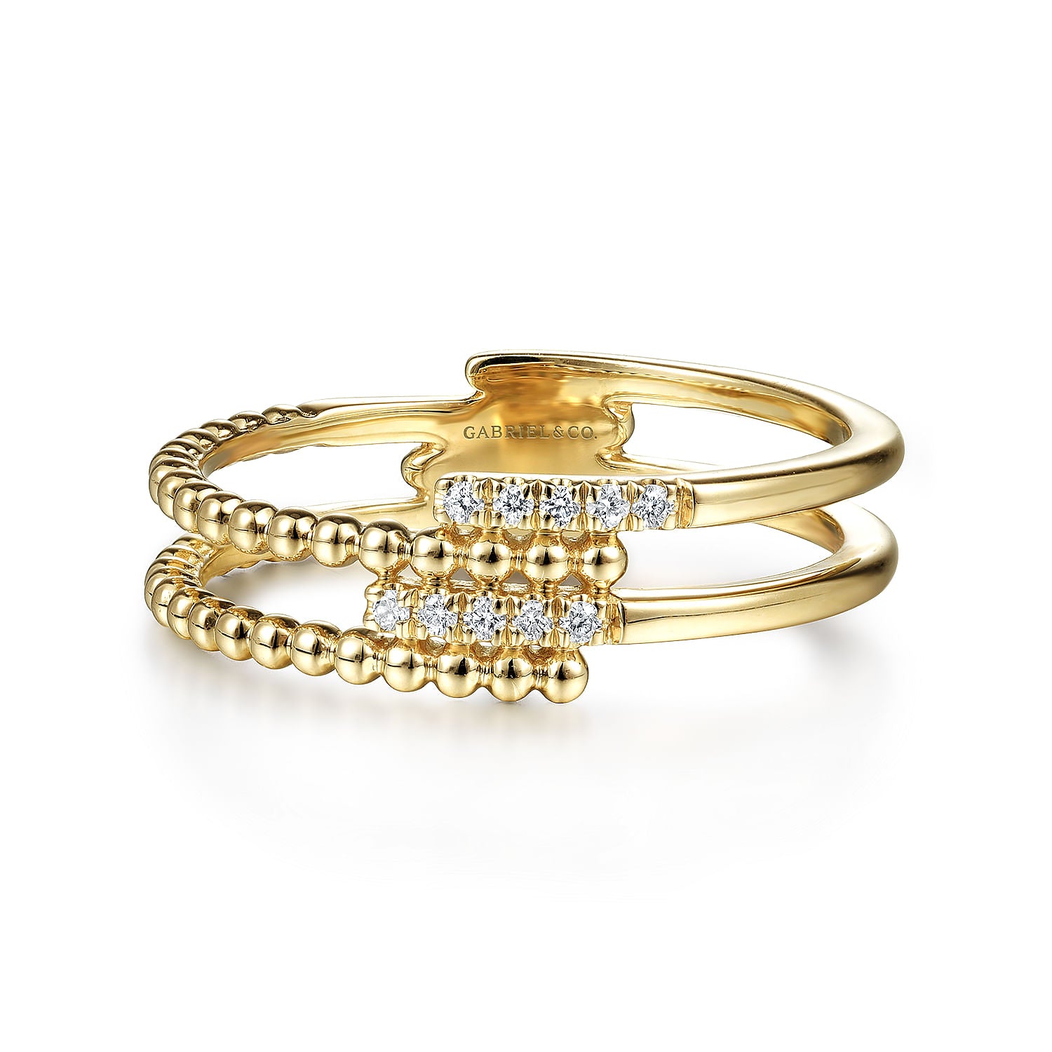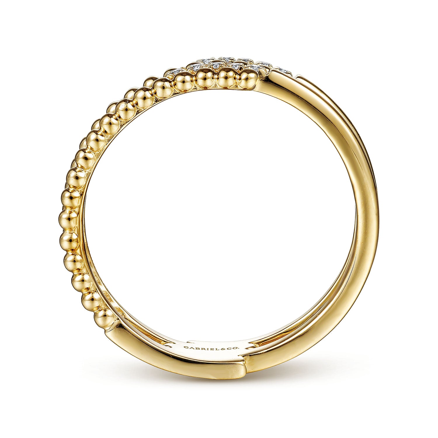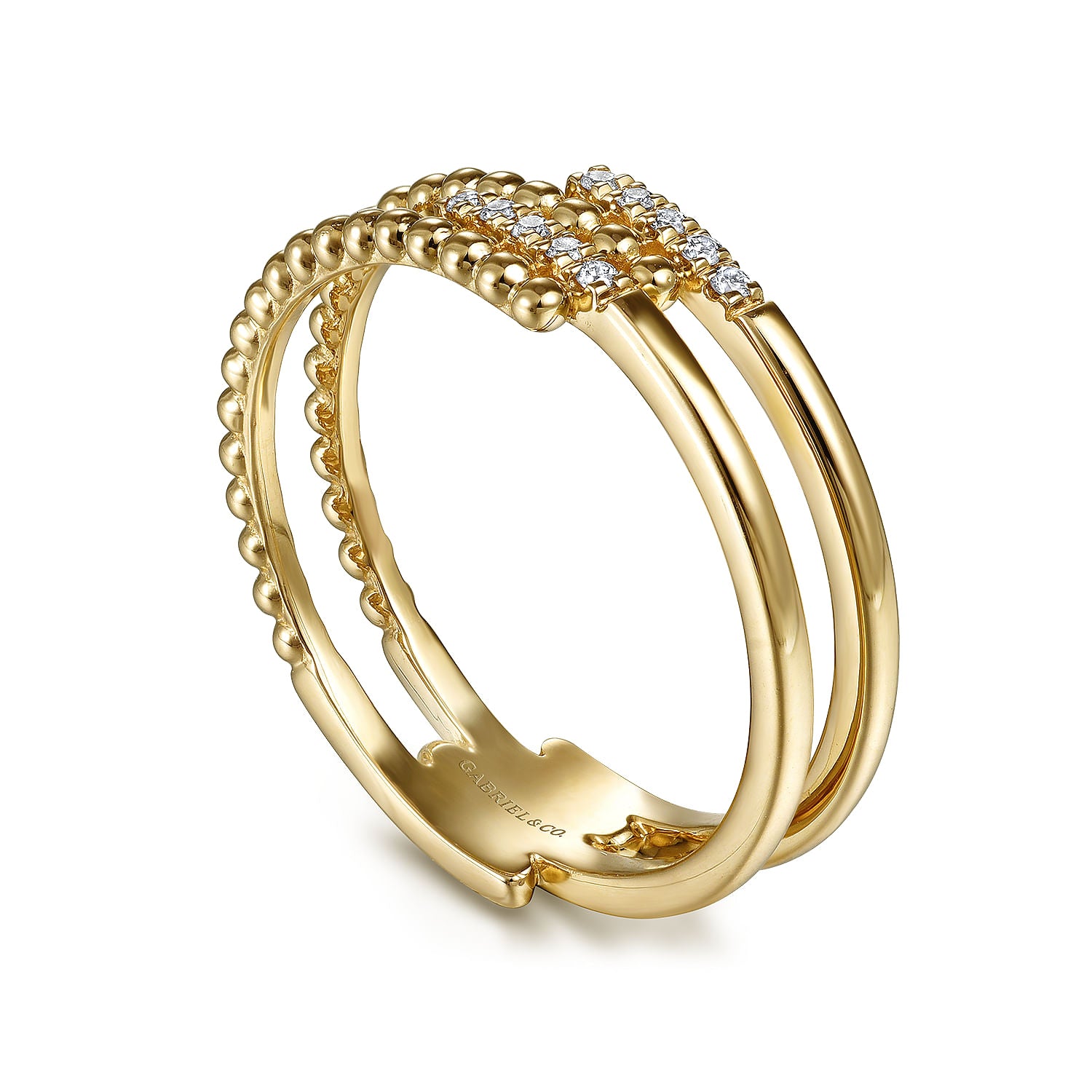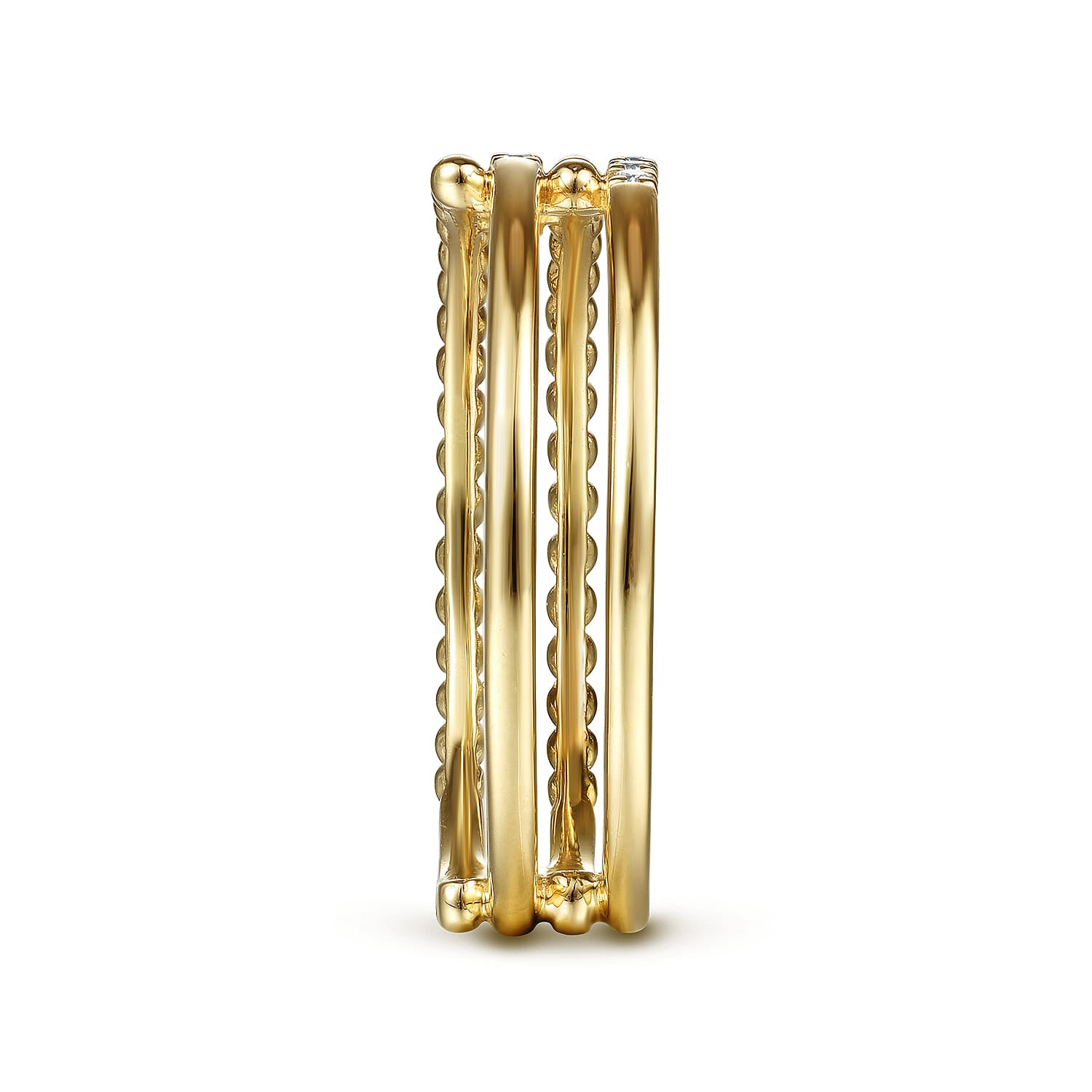 14K Yellow Gold Beaded Interlocking Diamond Ring