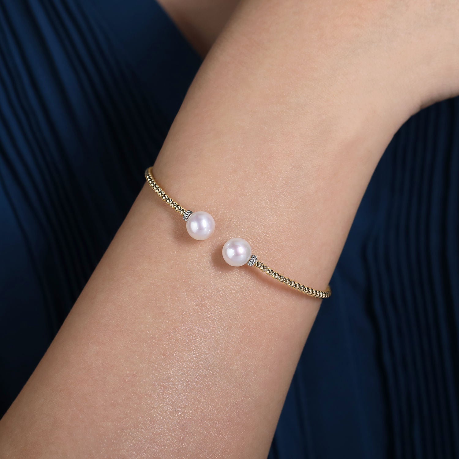 You're reviewing: 14K Yellow Gold Bujukan Bead Split Bracelet with Pearl and Diamond Caps