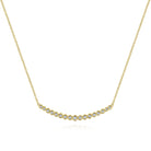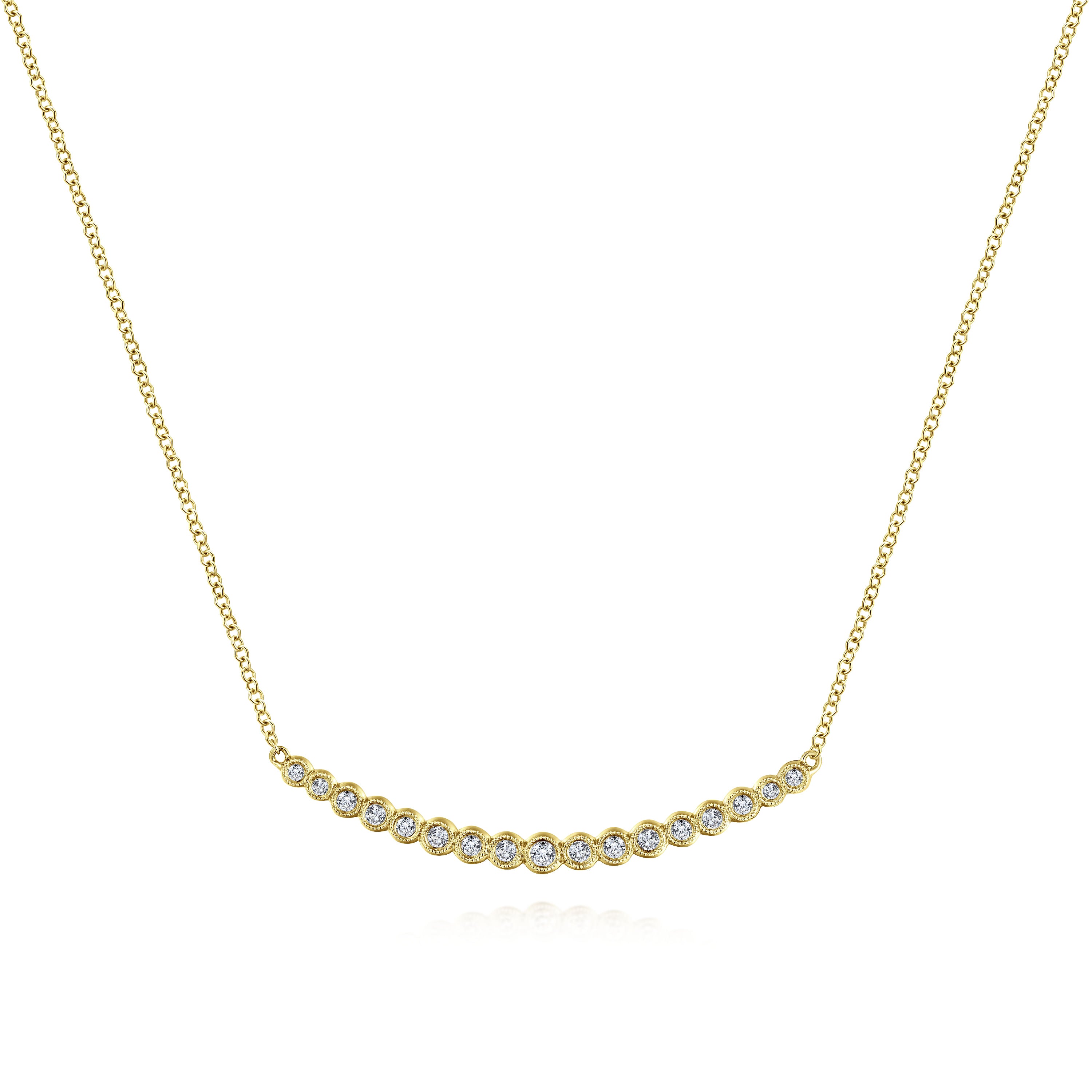 14K Yellow Gold Curved Bar Necklace with Bezel Set Round Diamonds