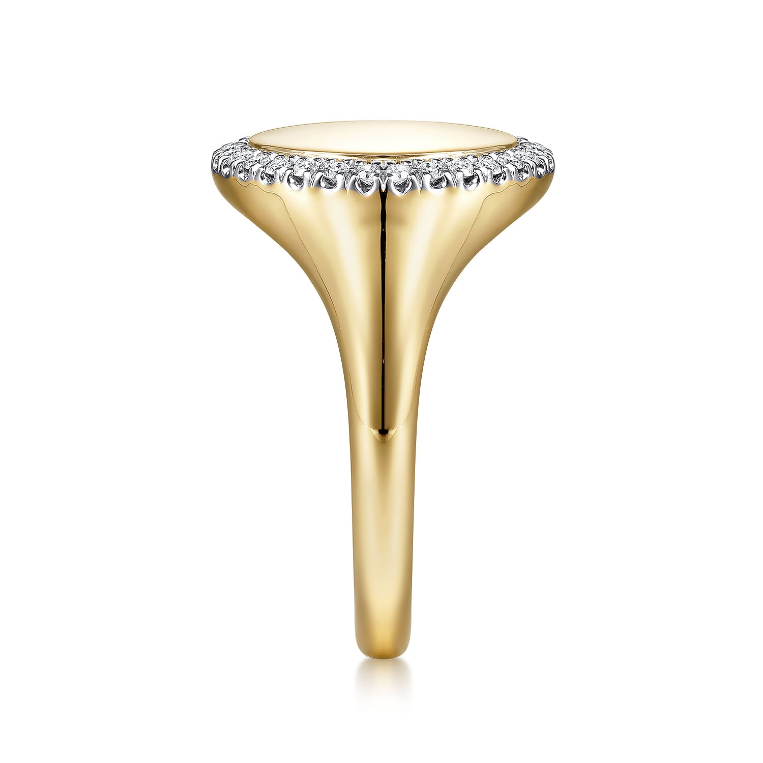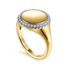 14K Yellow Gold Pinky Signet Ring with Diamond Halo