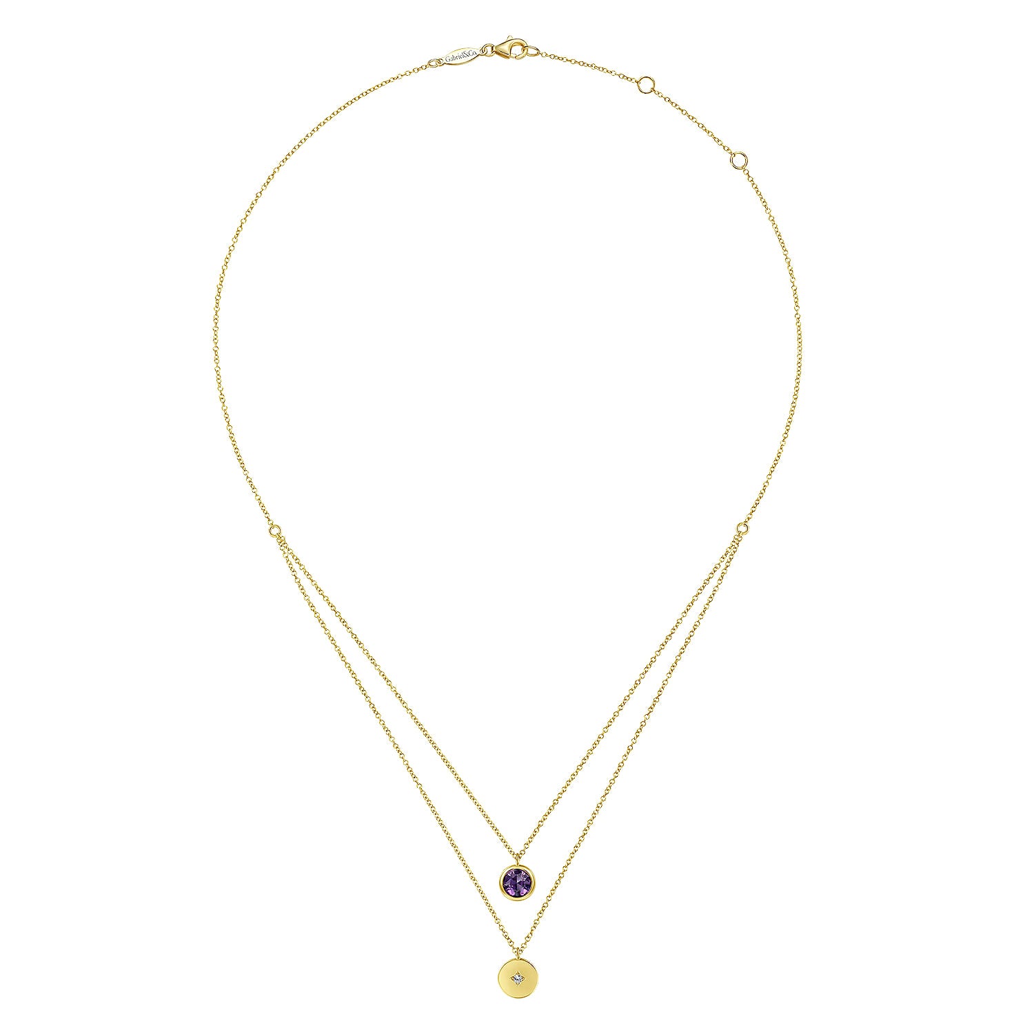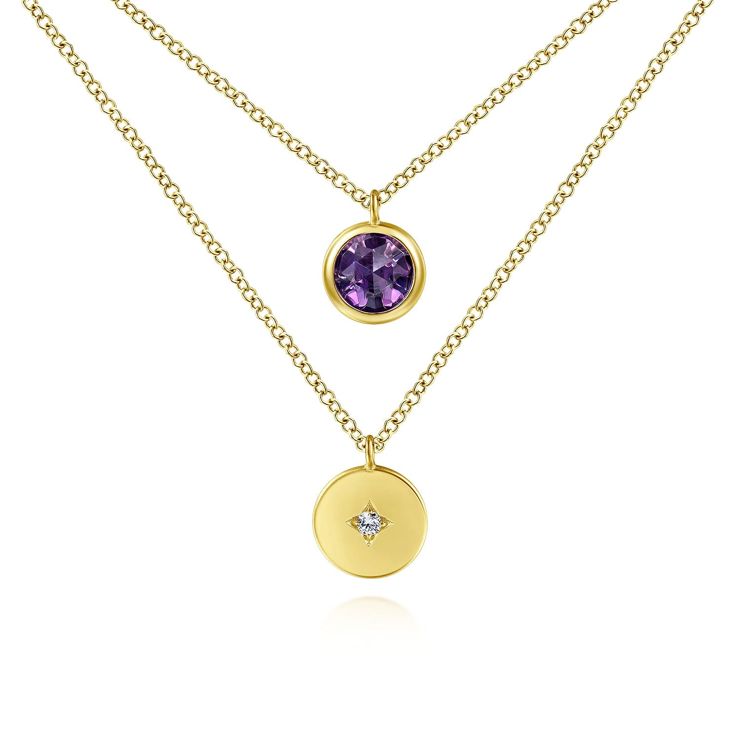 You're reviewing: 14K Yellow Gold Round Bezel Set Amethyst and Diamond Disc Necklace