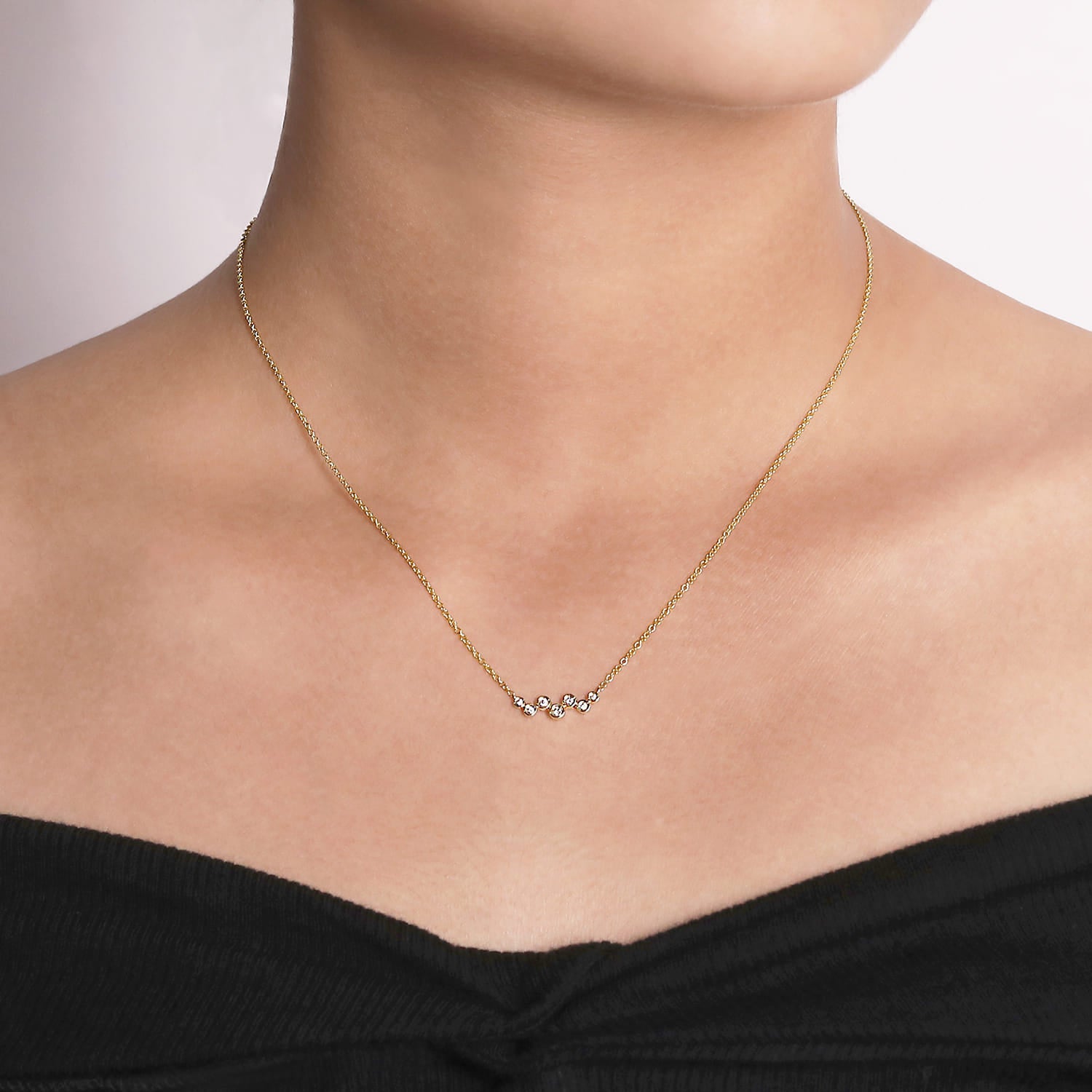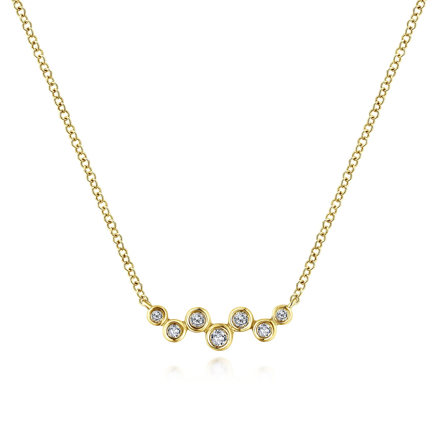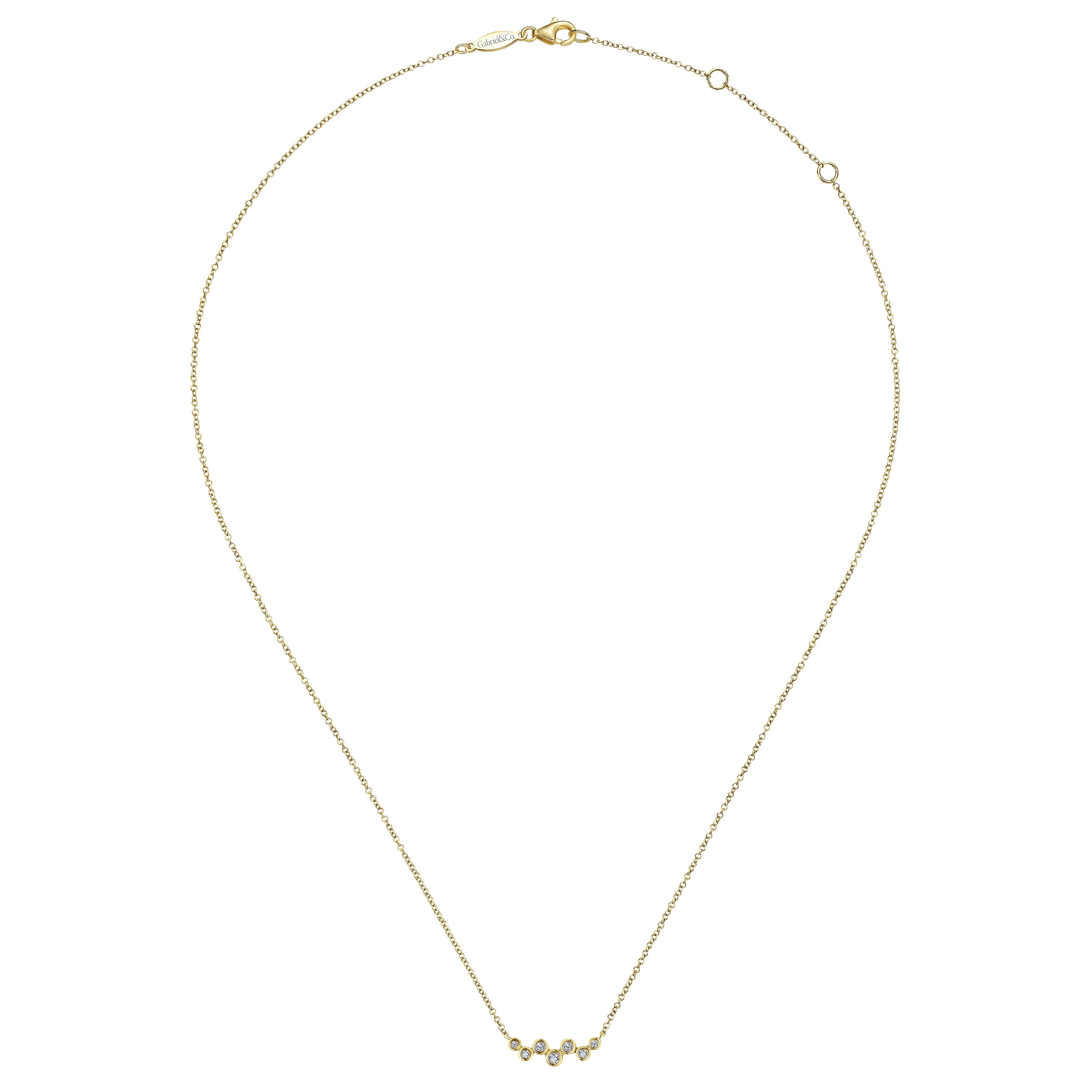 You're reviewing: 14K Yellow Gold Zig Zag Bubble Bar Necklace with Bezel Set Diamonds