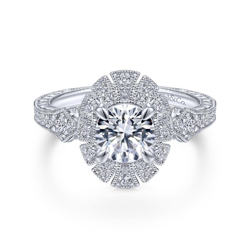 Gabriel & Co. 14k White Gold Art Deco Halo Engagement Ring