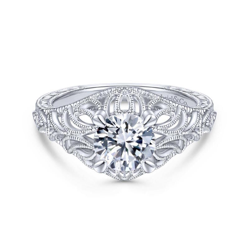 Gabriel & Co. 14k White Gold Art Deco Wide Band Engagement Ring