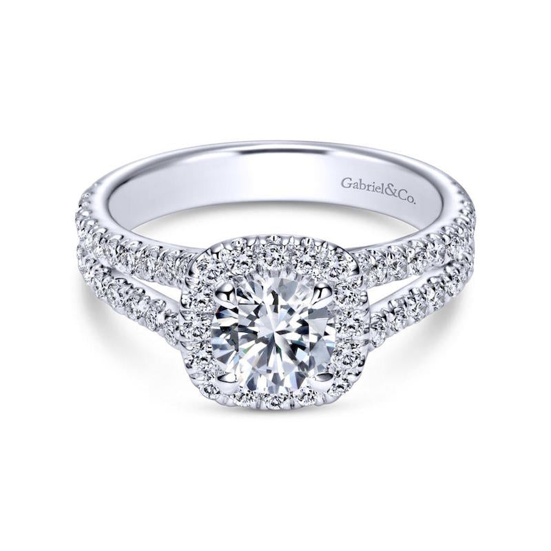 Gabriel & Co. 14k White Gold Contemporary Halo Engagement Ring