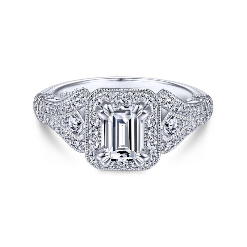 Gabriel & Co. 14k White Gold Victorian Halo Engagement Ring