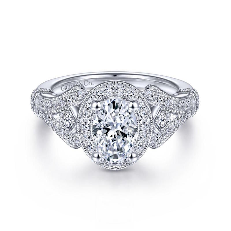 Gabriel & Co. 14k White Gold Victorian Halo Engagement Ring