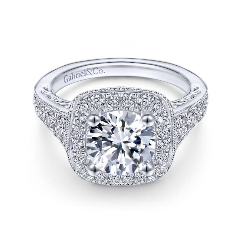 Gabriel & Co. 14k White Gold Victorian Halo Engagement Ring