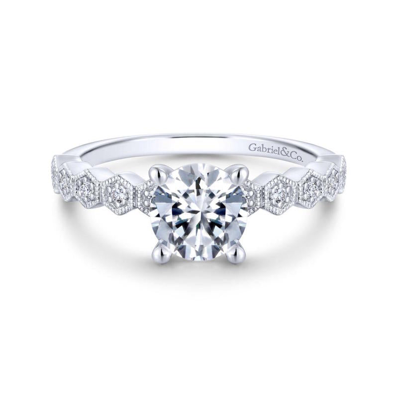 Gabriel & Co. 14k White Gold Victorian Straight Engagement Ring