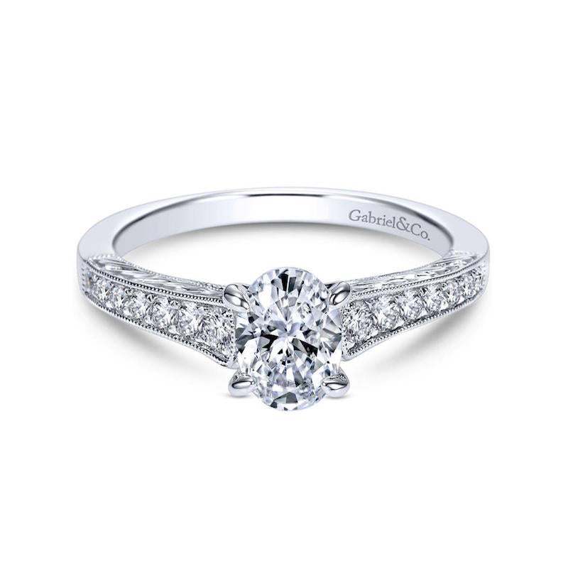 Gabriel & Co. 14k White Gold Victorian Straight Engagement Ring