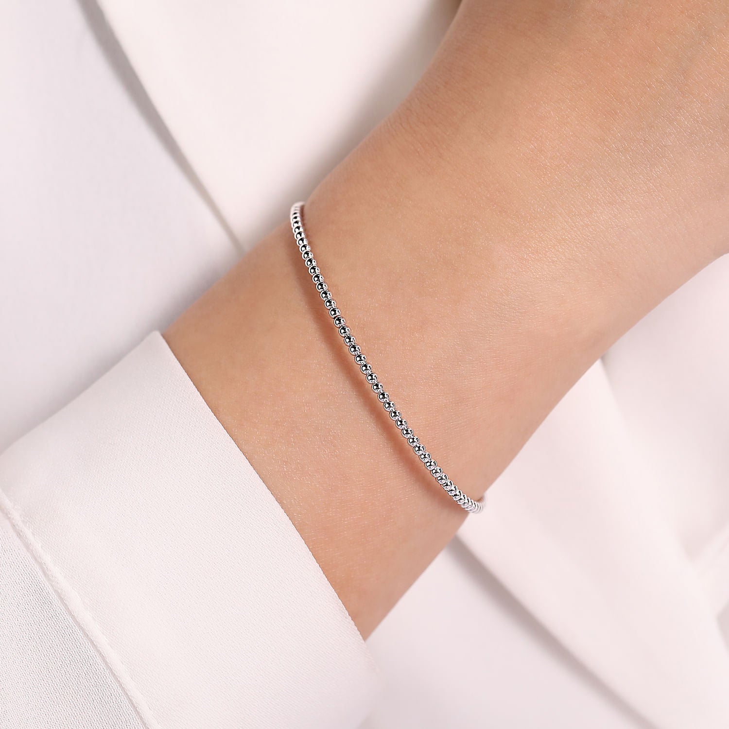 Split 14K White Gold Beaded Bujukan Bangle