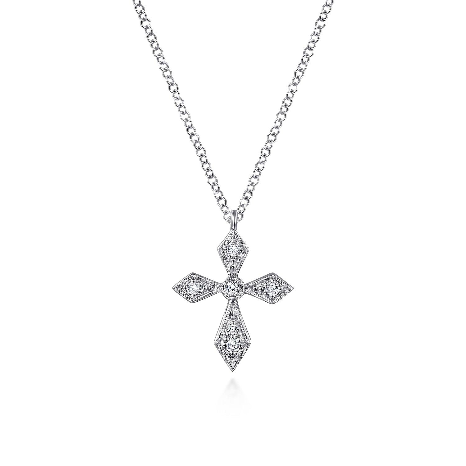 Vintage Inspired 14K White Gold Pointed Diamond Cross Pendant Necklace