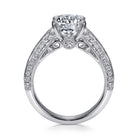 Vintage Inspired 14K White Gold Round Wide Band Diamond Channel Set Engagement Ring