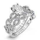 This beautiful vintage-inspired engagement ring design is built for an oval center stone and contains the perfect touches of .28 ctw of white diamonds in its midst.