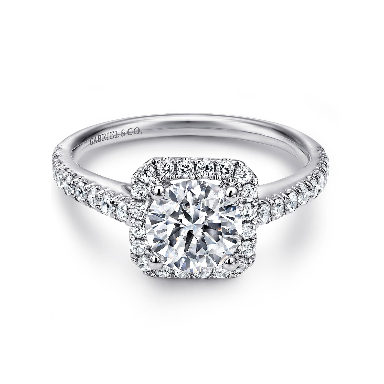 14K White Gold Cushion Halo Round Diamond Engagement Ring