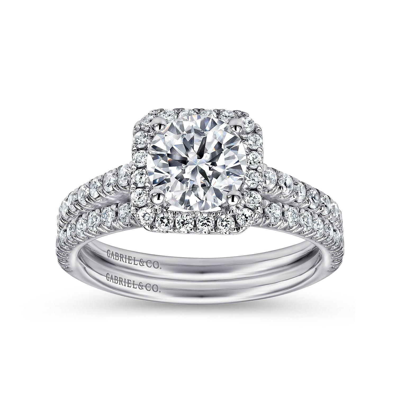 You're reviewing: 14K White Gold Cushion Halo Round Diamond Engagement Ring
