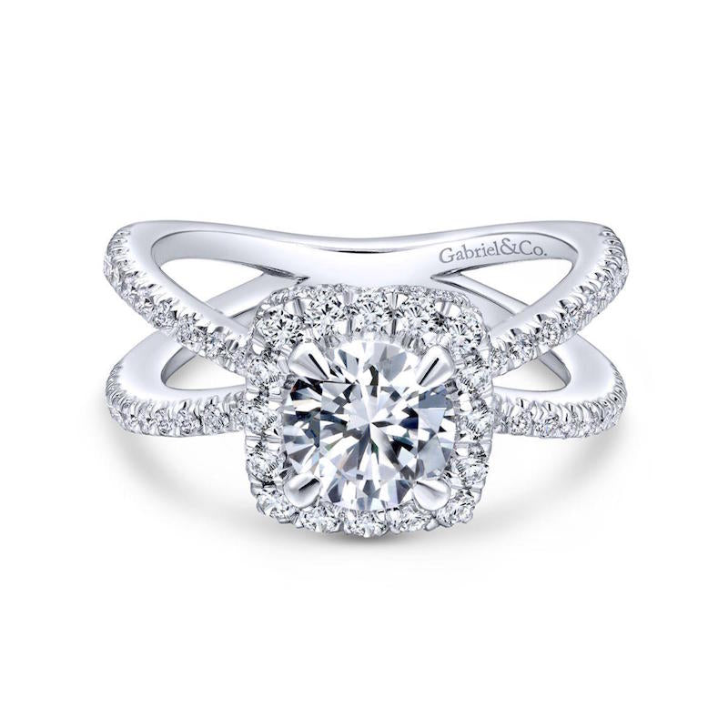 Gabriel & Co. 14k White Gold Rosette Split Shank Engagement Ring