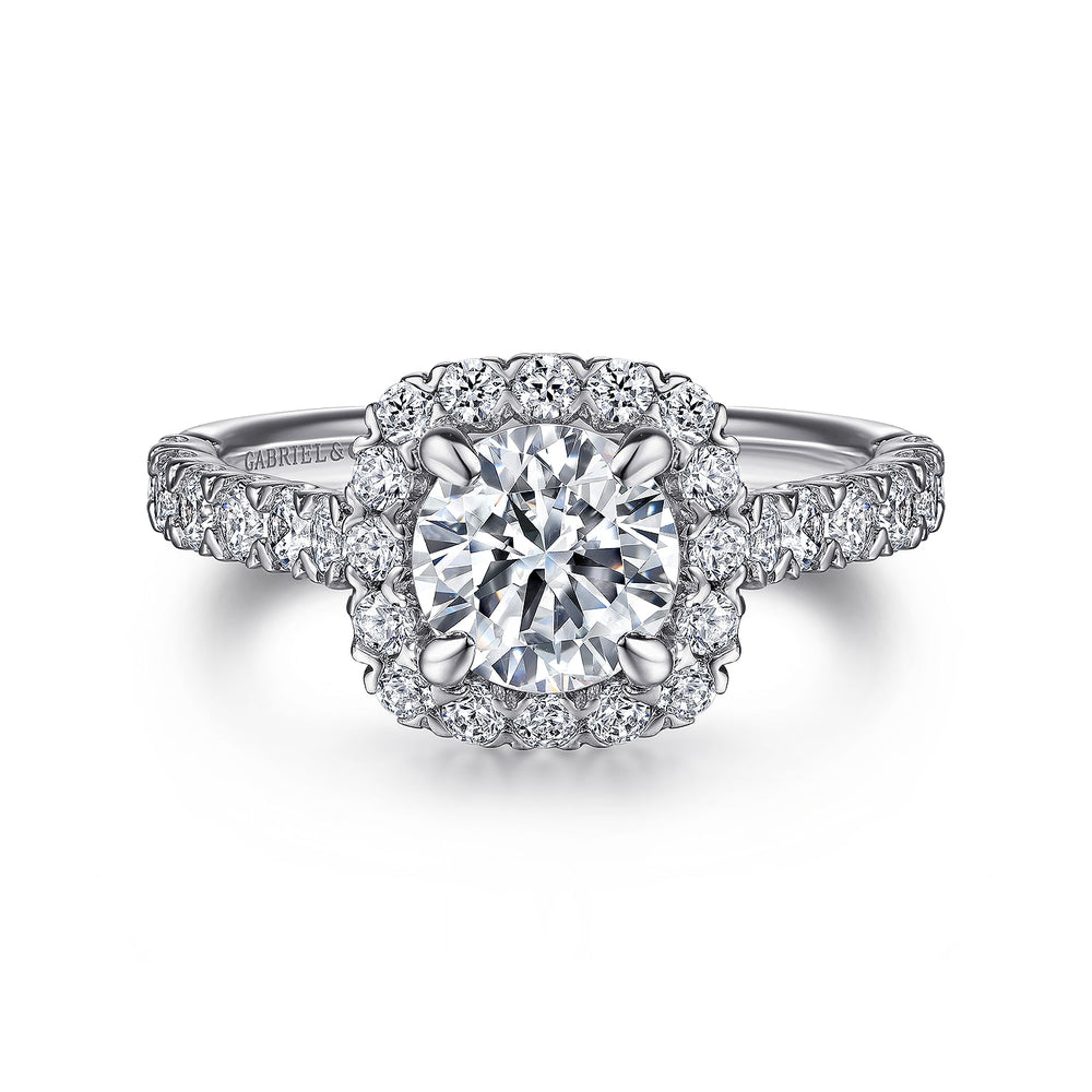 You're reviewing: 14K White Gold Cushion Halo Round Diamond Engagement Ring