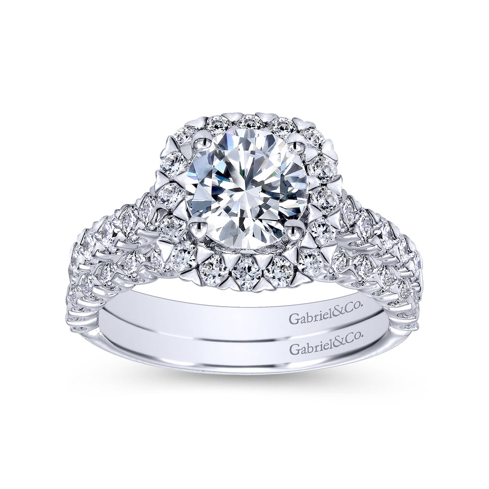 14K White Gold Cushion Halo Round Diamond Engagement Ring