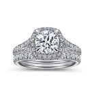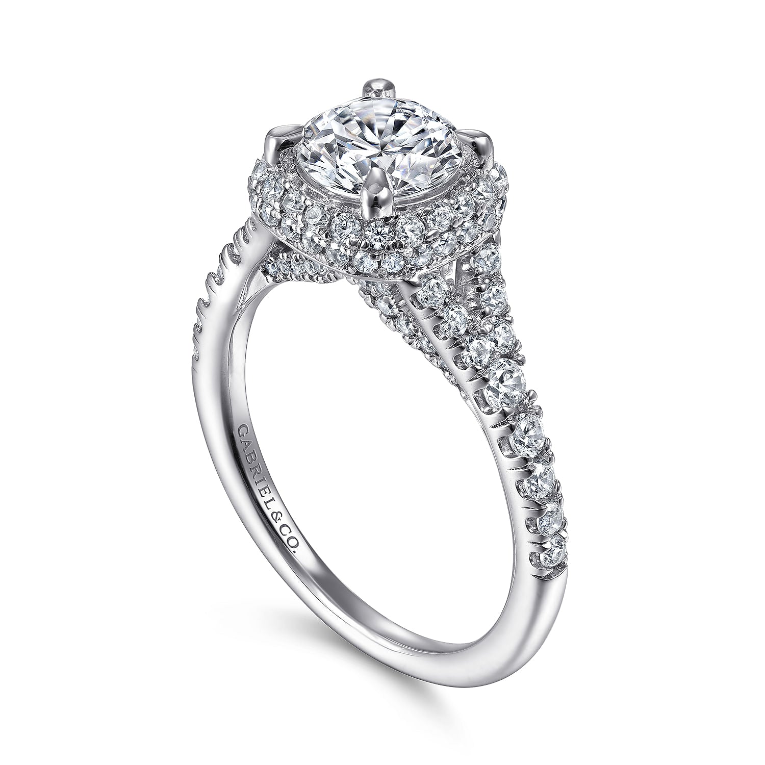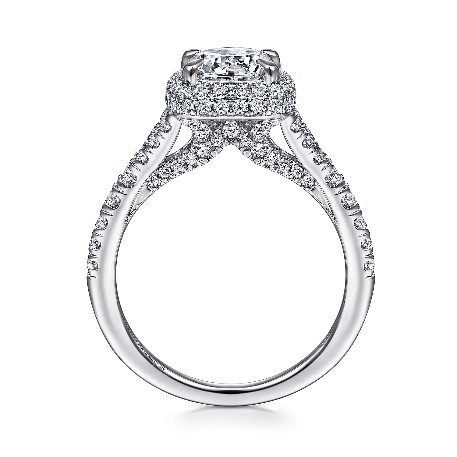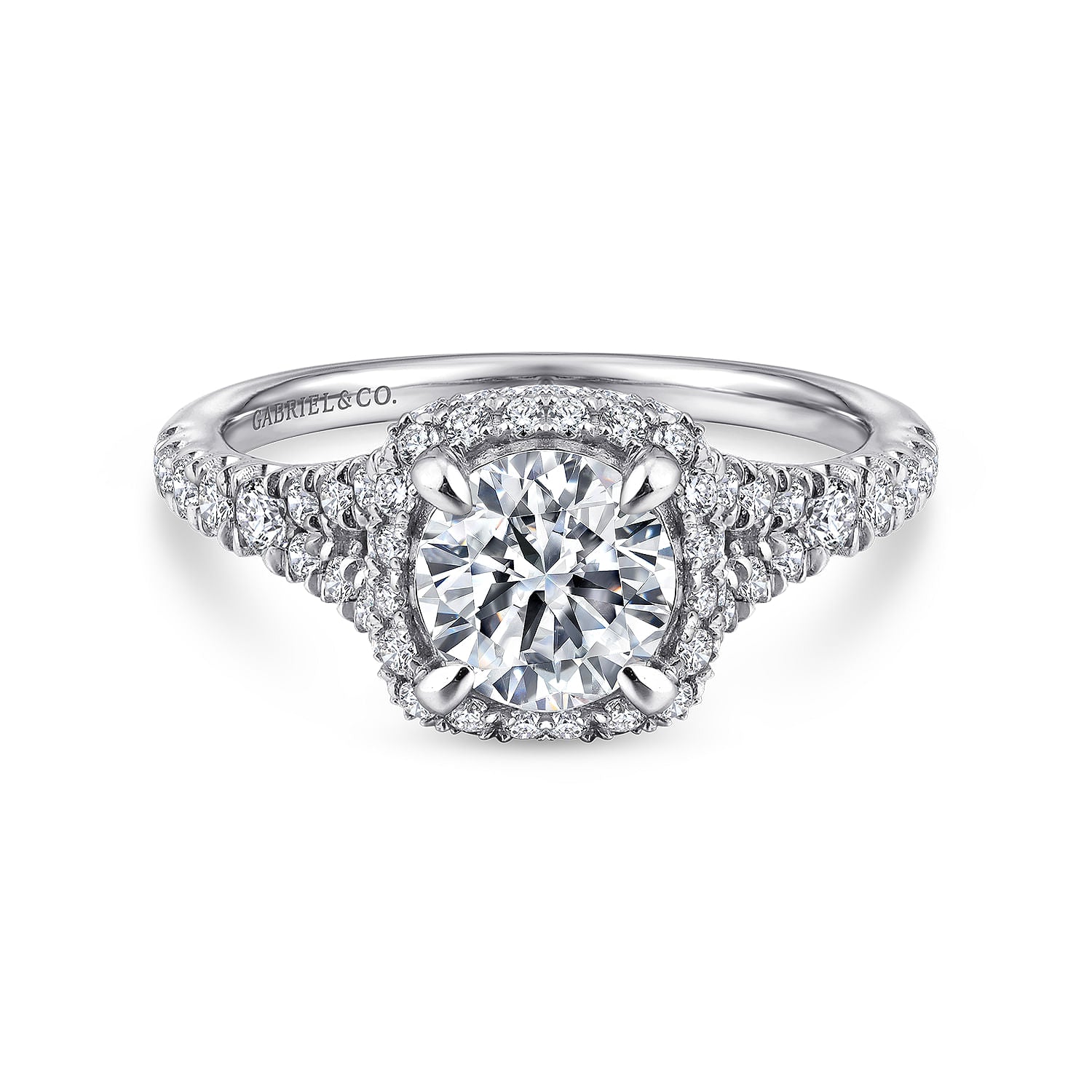 14K White Gold Cushion Halo Round Diamond Engagement Ring
