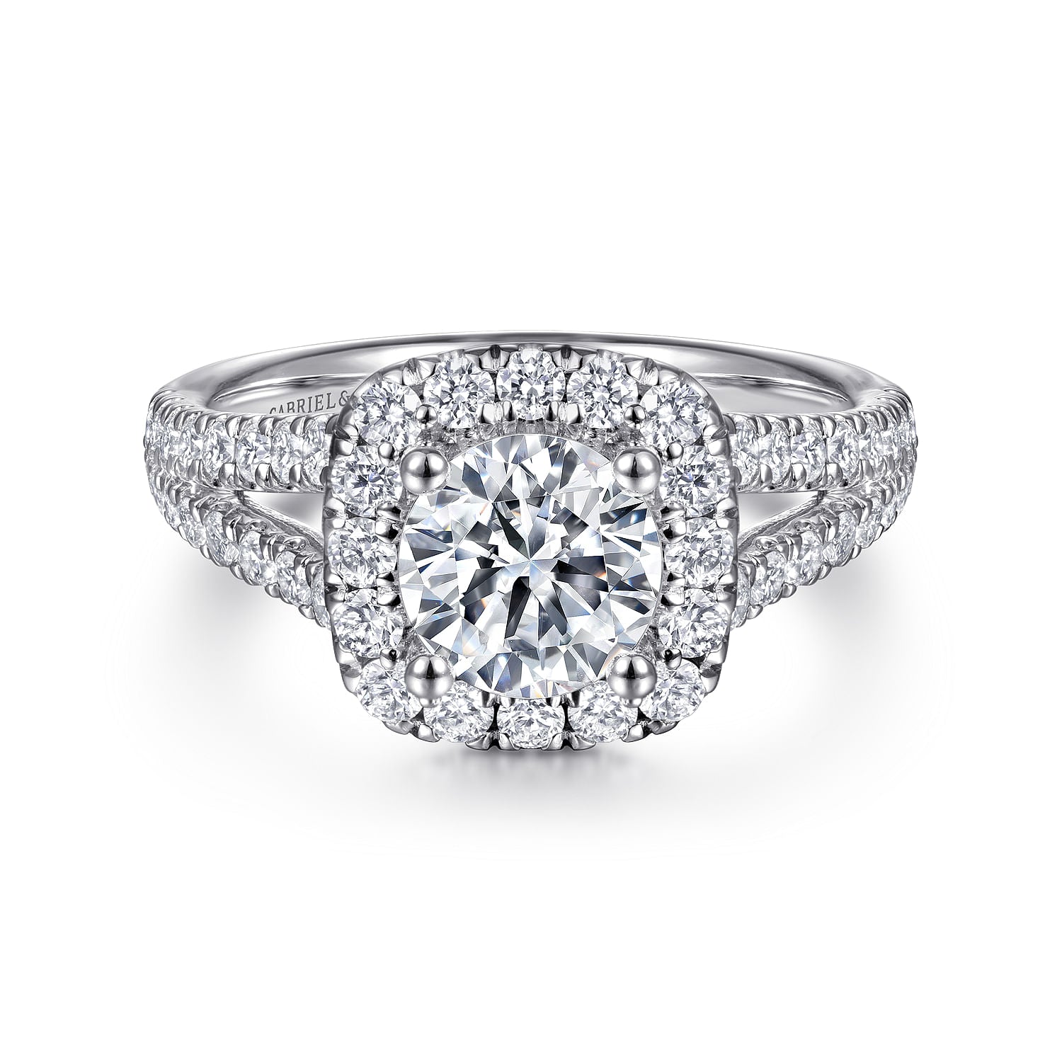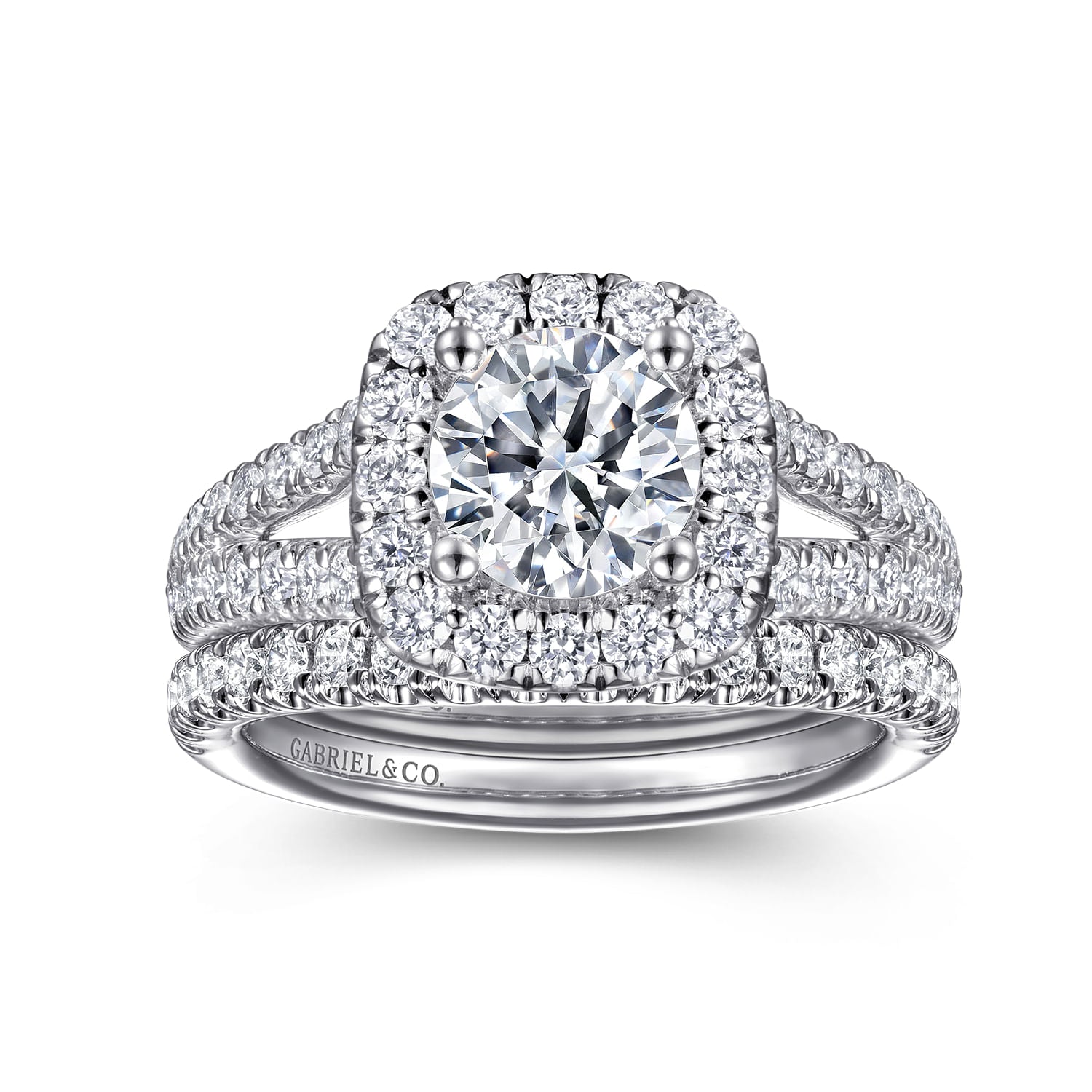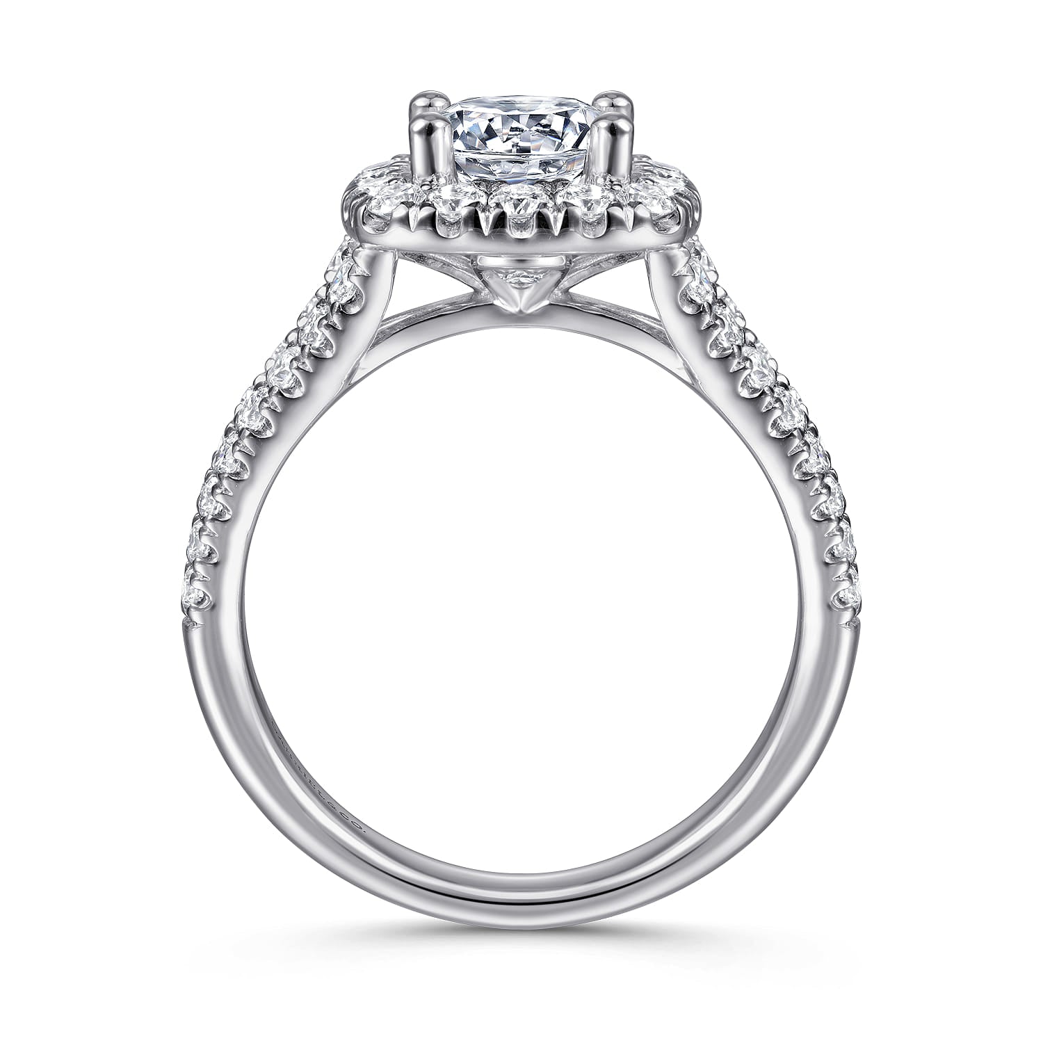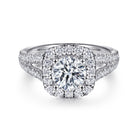 14K White Gold Cushion Halo Round Diamond Engagement Ring