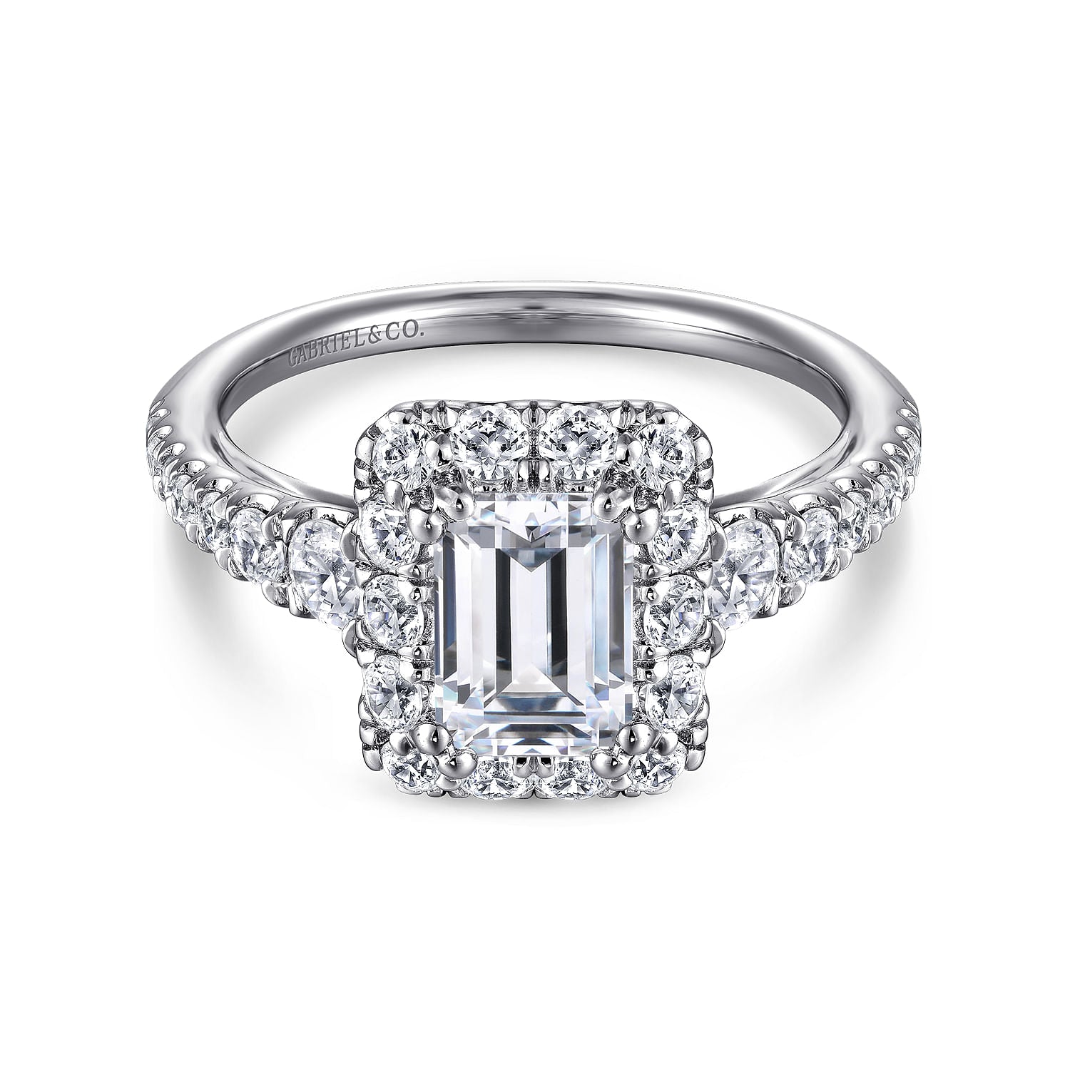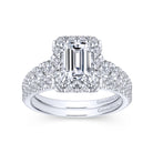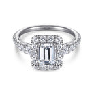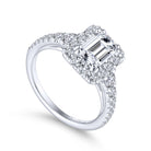 14K White Gold Halo Emerald Cut Diamond Engagement Ring
