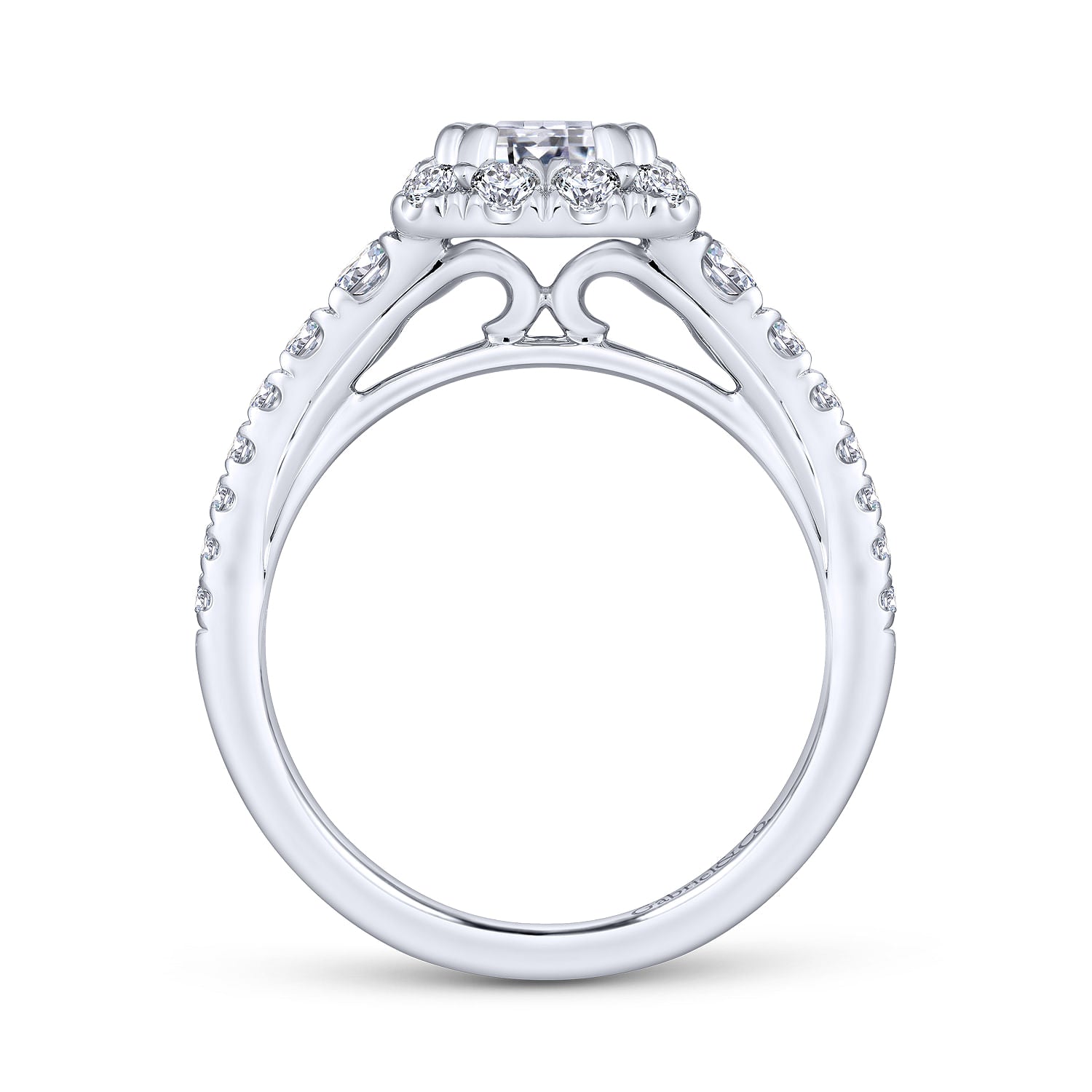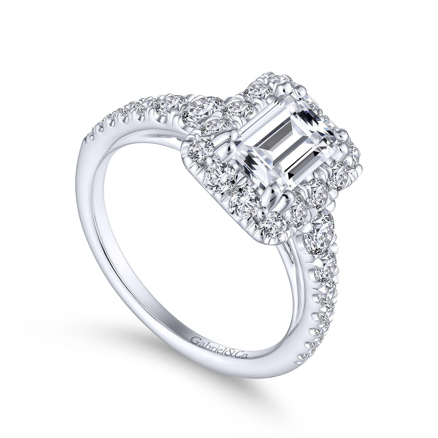 You're reviewing: 14K White Gold Halo Emerald Cut Diamond Engagement Ring