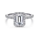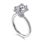 14K White Gold Halo Emerald Cut Diamond Engagement Ring