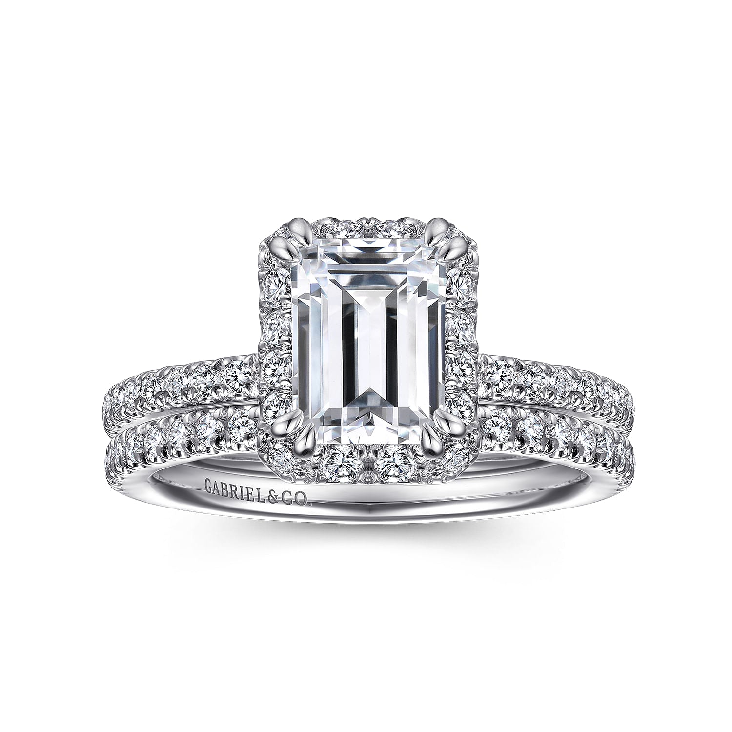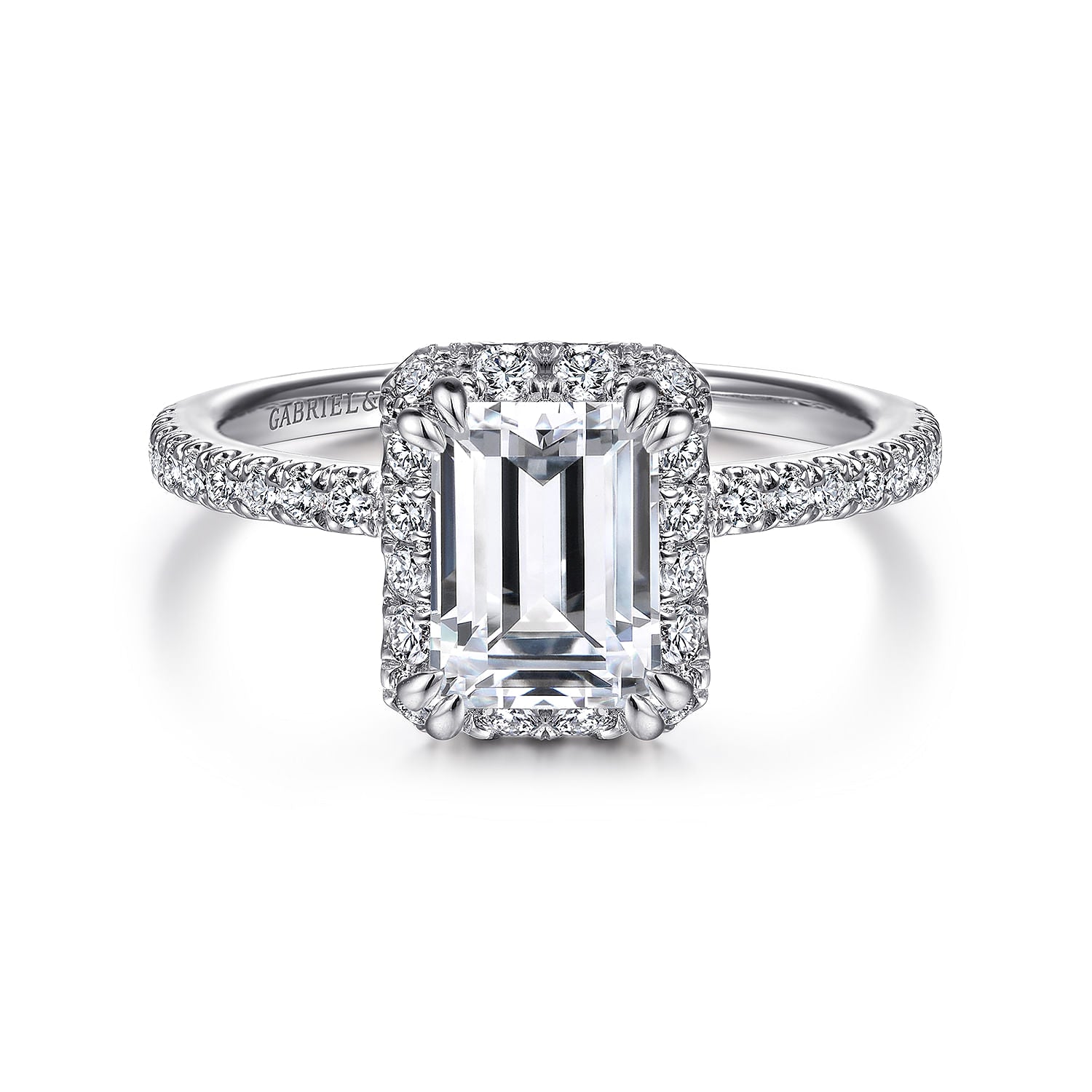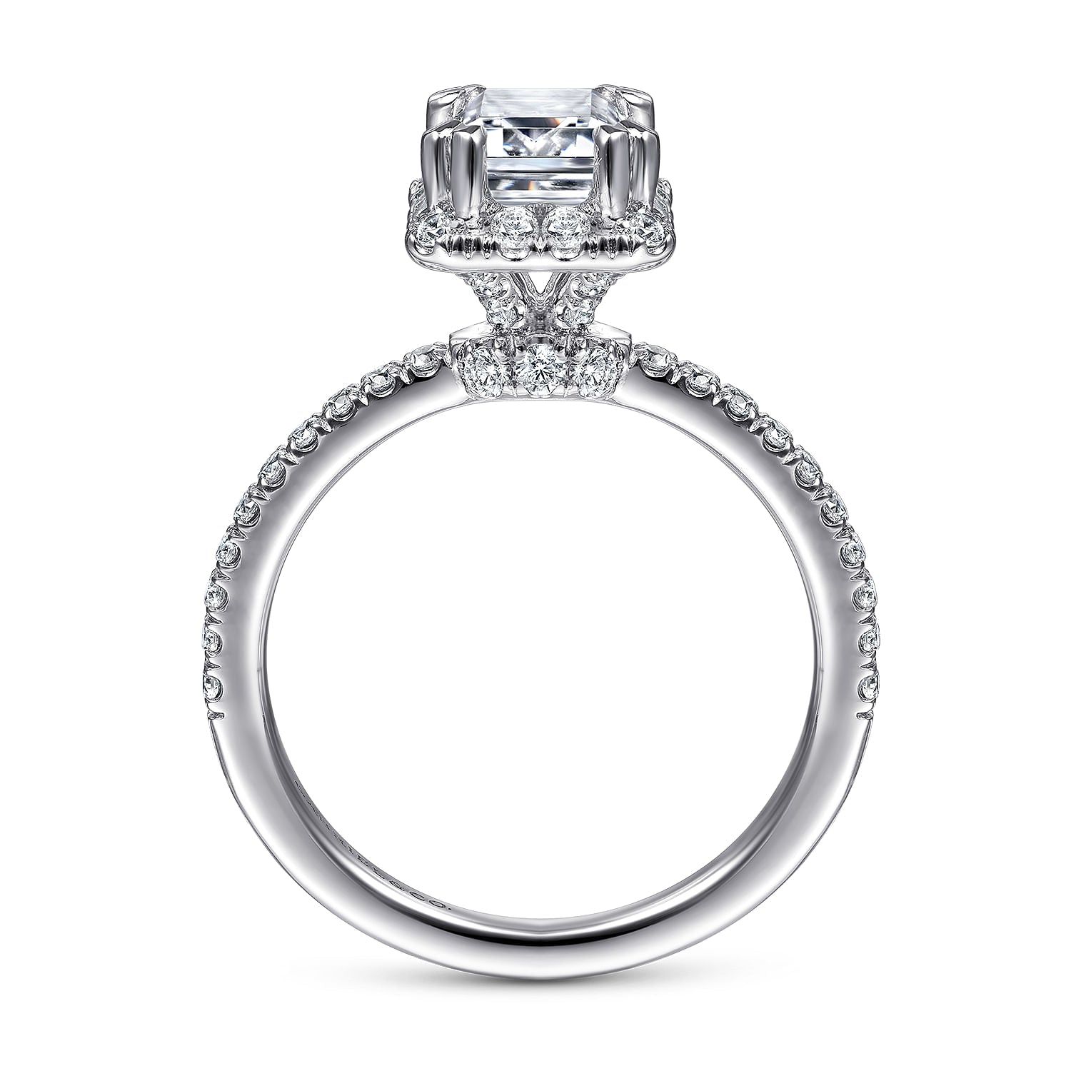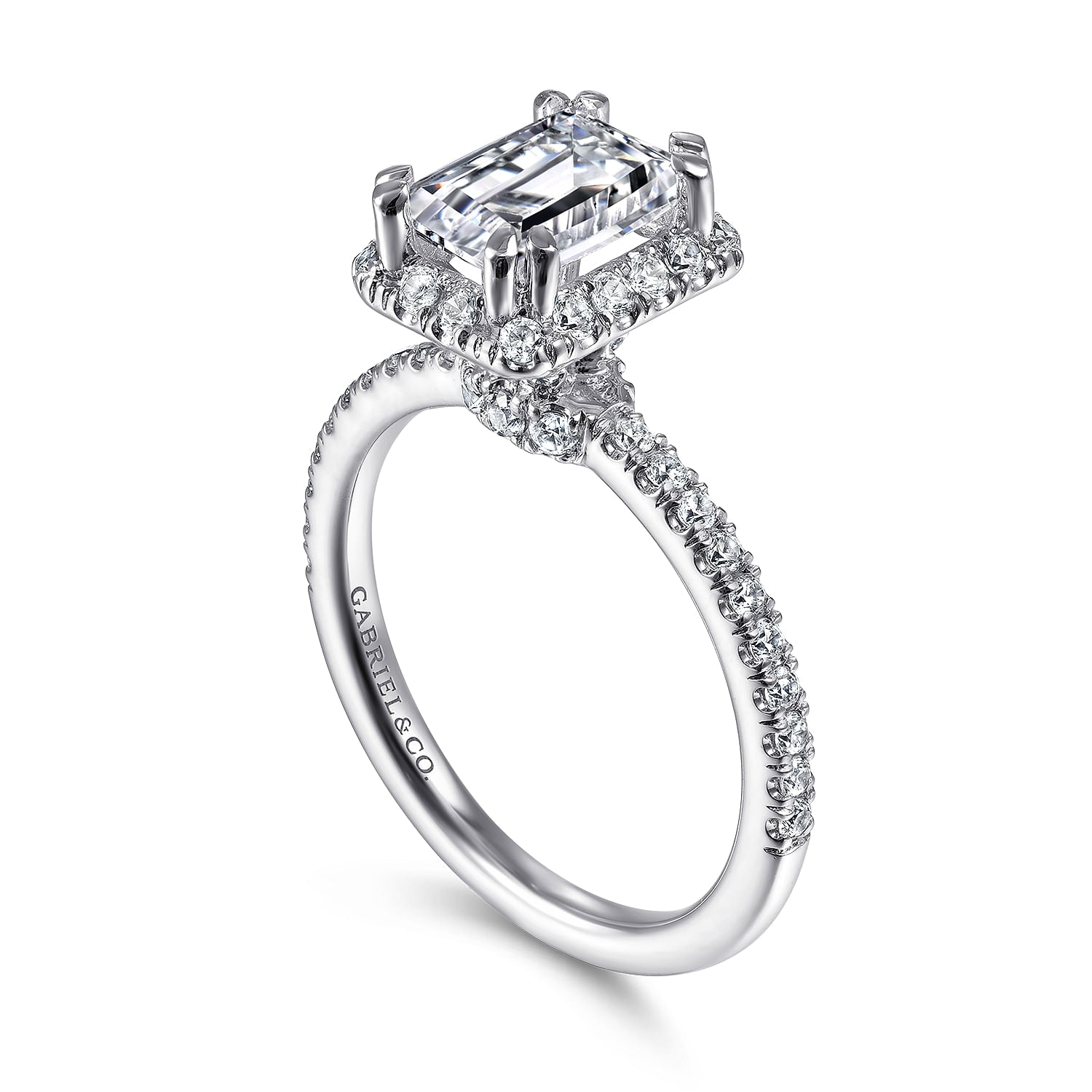 You're reviewing: 14K White Gold Halo Emerald Cut Diamond Engagement Ring