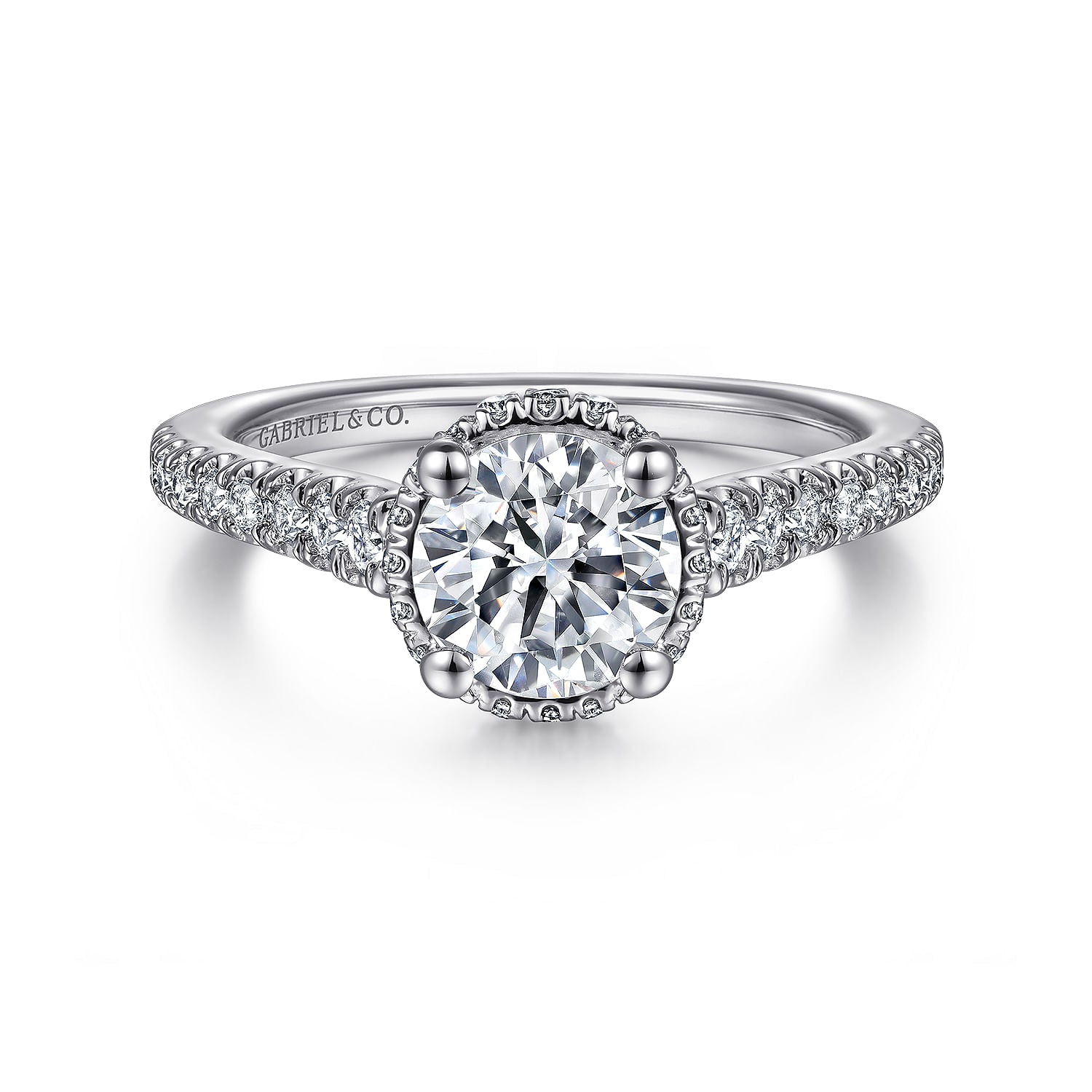 You're reviewing: 14K White Gold Hidden Halo Round Diamond Engagement Ring