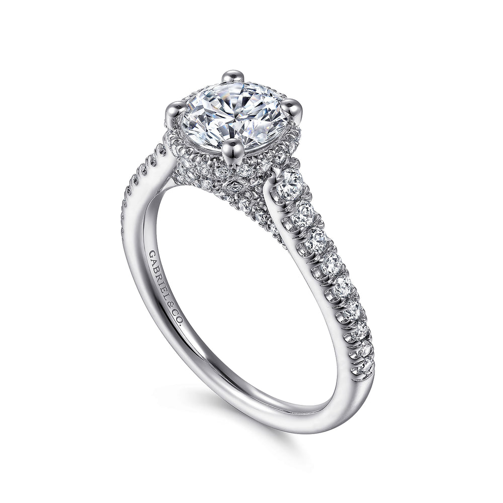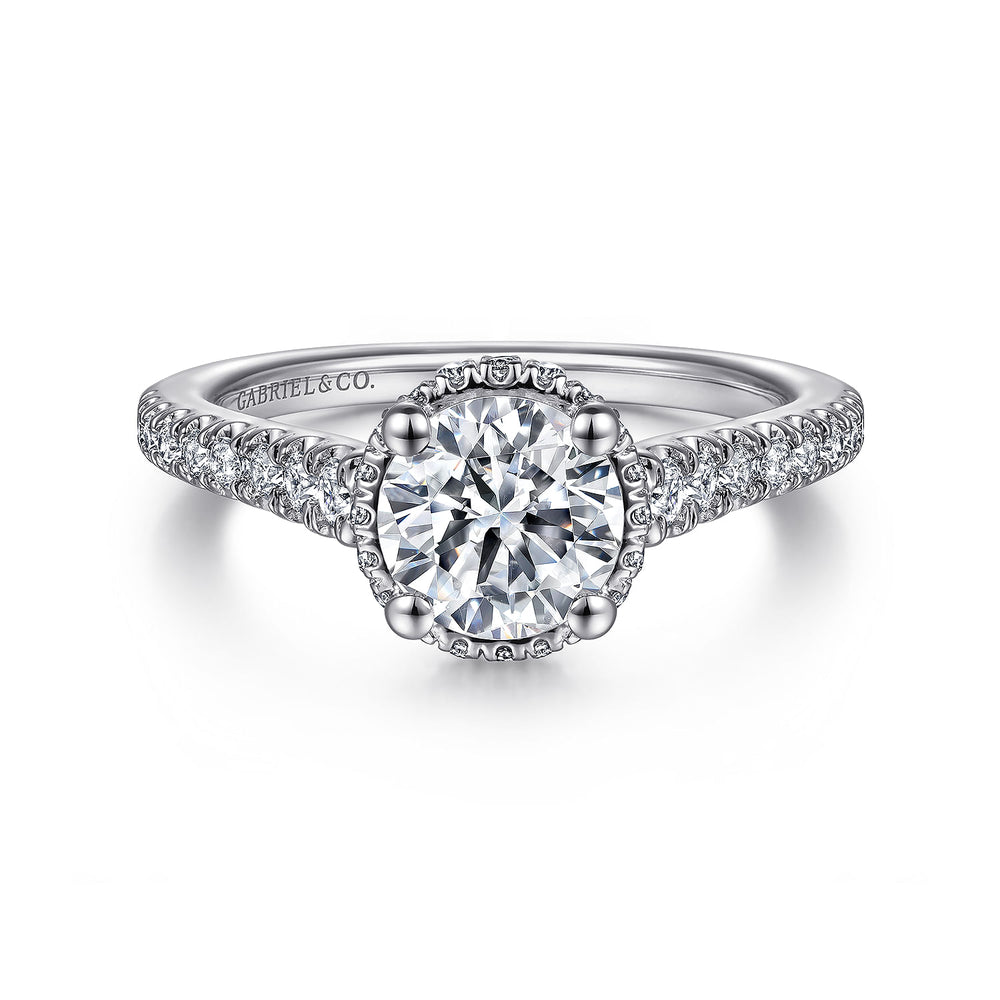 14K White Gold Hidden Halo Round Diamond Engagement Ring
