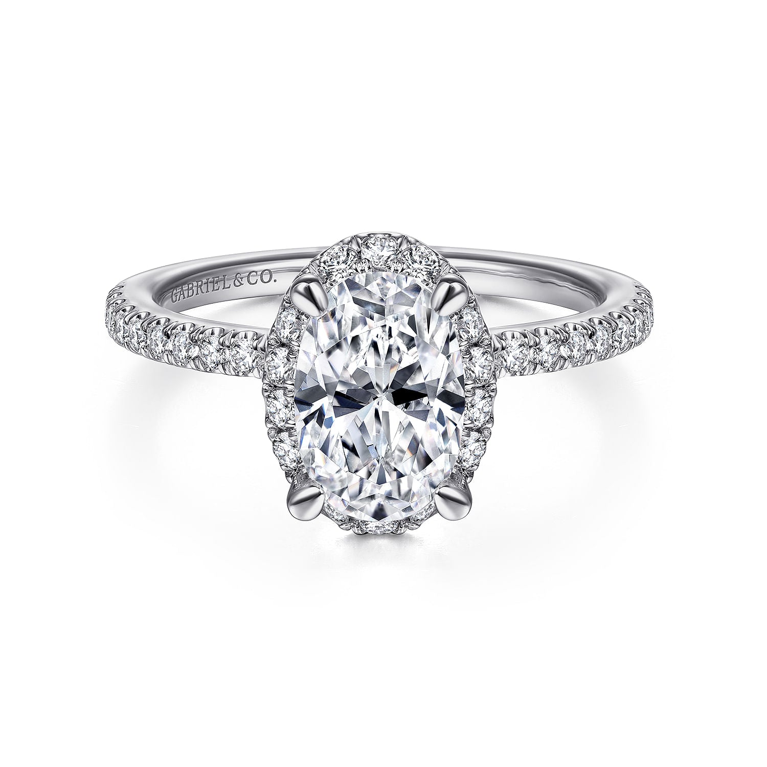 14K White Gold Oval Halo Diamond Engagement Ring