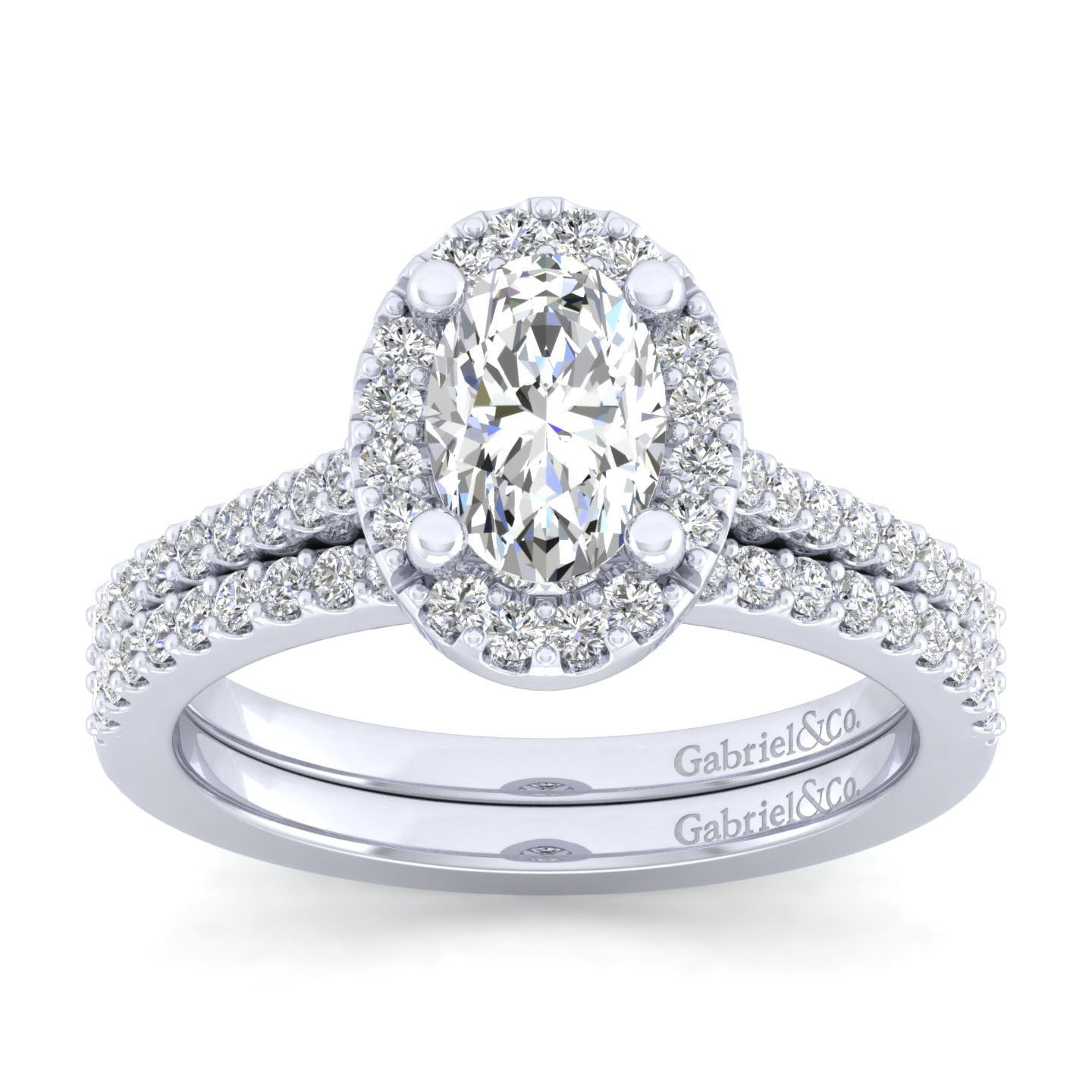14K White Gold Oval Halo Diamond Engagement Ring