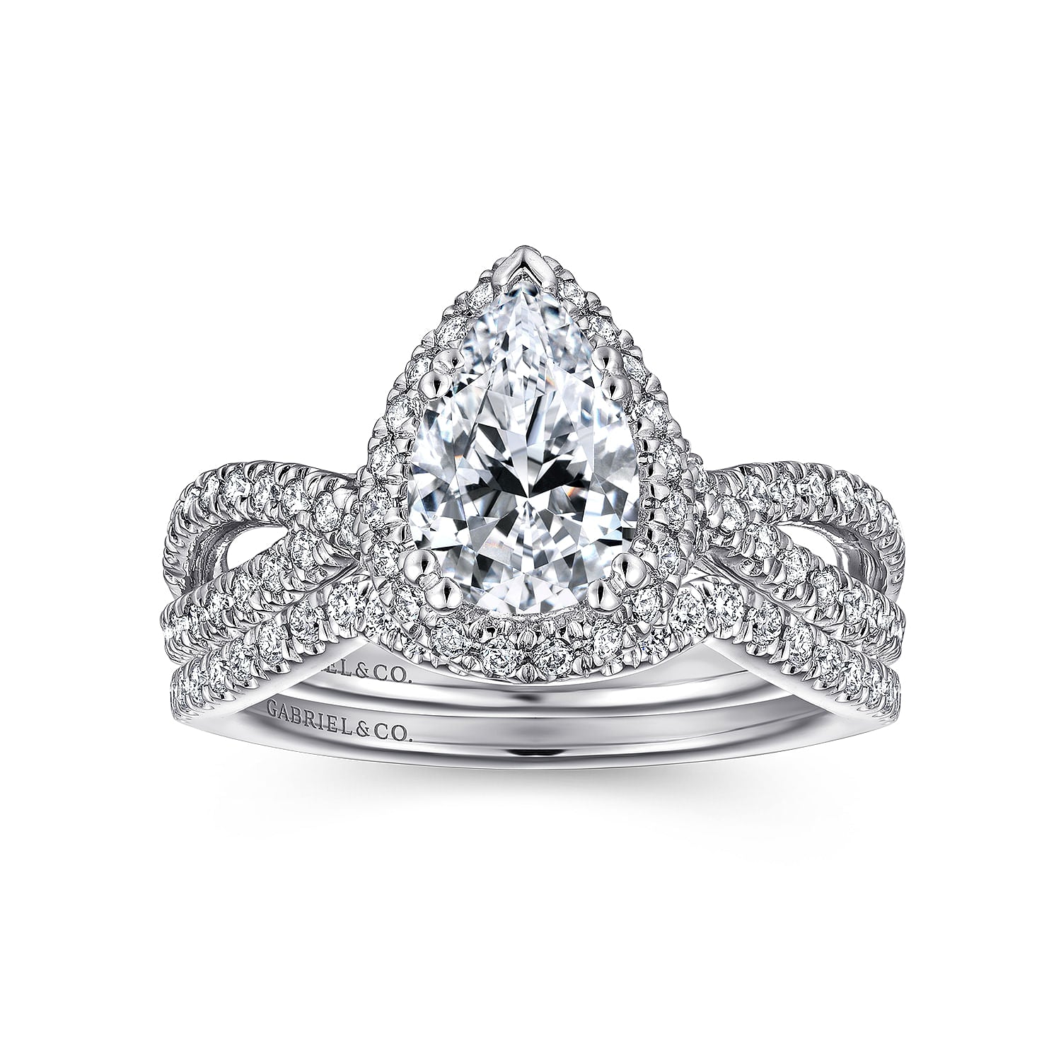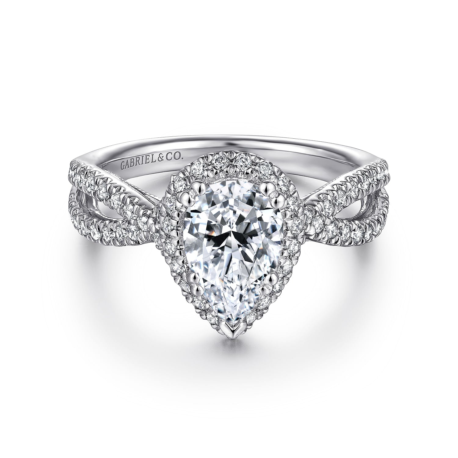 14K White Gold Pear Shape Halo Diamond Engagement Ring