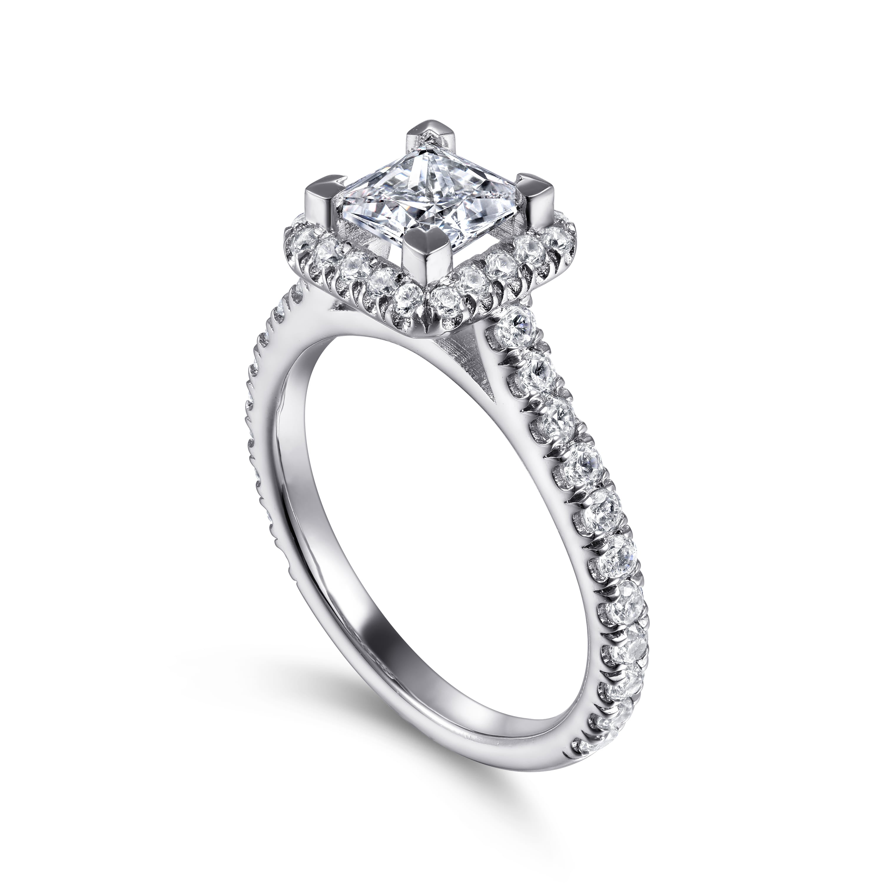 You're reviewing: 14K White Gold Princess Halo Diamond Engagement Ring